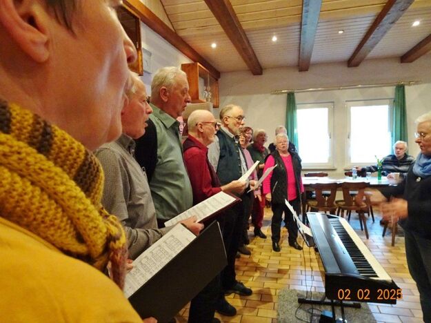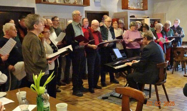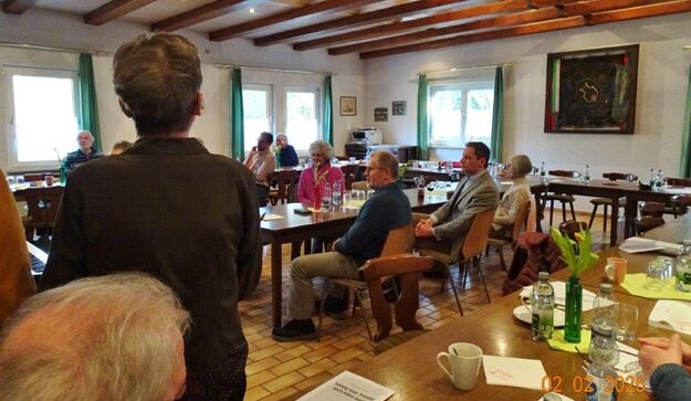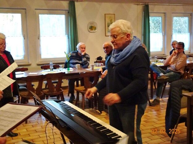 Das Vereinsheim füllte sich am Sonntag so nach und nach und um 15.00 Uhr begannen wir mit zwei Liedvorträgen unter dem Dirigat von Aldo Martinez: „Solang man Träume noch leben kann“ und „Über 7 Brücken musst du geh´n“. Markus Ksienzyk, unser 2. Vorsitzender, eröffnete dann in Vertretung unseres 1. Vorsitzenden, die JHV und begrüßte alle Anwesenden, darunter unseren BGM Michael Möslang und seine langjährige Stellvertreterin und Gemeinderätin Frau Dr. Iris Müller-Reinartz.
