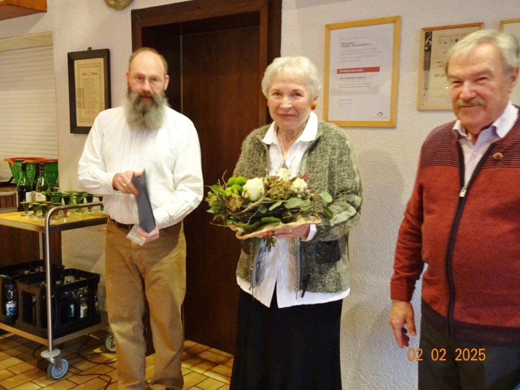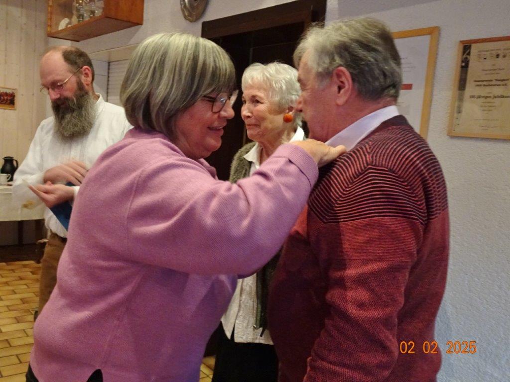 Horst Steiner wurde für 40 Jahre Mitgliedschaft zum Ehrenmitglied ernannt, die Auszeichnung wird unser Vorstand noch nachträglich vornehmen. Ute König hatte Markus unterstützt und den Geehrten die Ehrennadeln angesteckt und auch Heidi einen schönen Blumenstrauß überreicht. Dankeschön Ute, auch fürs Besorgen.