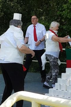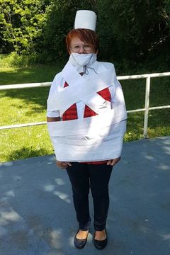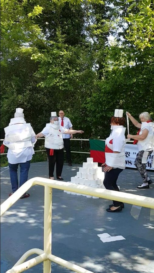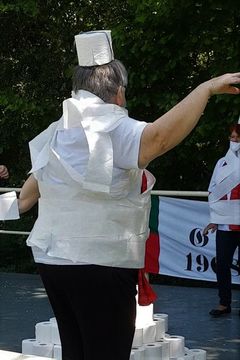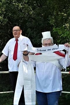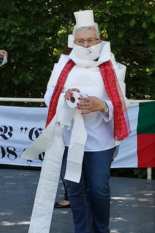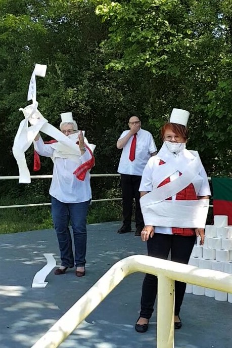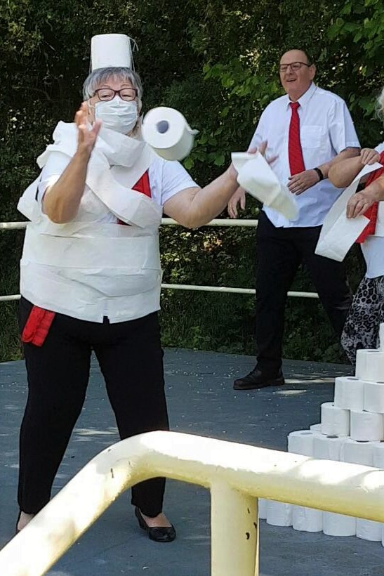 Diesen Eindruck bekamen jedenfalls die, die am Samstag zufällig am Vereinsgelände im Erlich vorbeikamen. Da wurden ein paar Sängerinnen „gewickelt und verpackt“, mit dem in Coronazeiten so heiß geliebten und oft ausverkauftem Klopapier. Hintergrund war die Nominierung unseres Vereins bei der Klopapier-Challenge durch den Musikzug der FFW Linkenheim. Diesen Spaß ließen sich einige unserer Chormitglieder nicht entgehen, natürlich alles nur mit Mundschutz und dem nötigen Abstand!