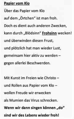 wollen mit Blödsinn „Frohsinn“ wir erwecken und als Mumien das Virus schrecken!