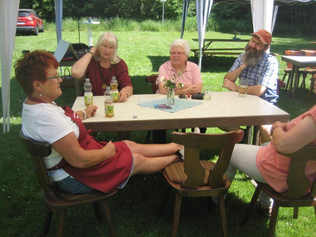Dann gehörte die Bühne wieder unserem unermüdlich auf dem Keyboard spielenden Klaus Eichsteller, der dezente Hintergrundmusik bot, aber auch die Möglichkeit, auf der Bühne mal richtig abzutanzen, super Klaus! Der Wettergott meinte es gut, man war froh über Schattenplätze und es war ein fröhliches Völkchen, das es sich im Erlich gut gehn ließ. Ein ganz großes Dankeschön an alle Helferinnen und Helfer, die hier unermüdlich im Einsatz waren und dieses Fest gelingen ließen und natürlich an unsere treuen Besucher und Unterstützer unseres Vereins. Wir haben auch Erfahrungswerte für künftige Feste aus dieser Veranstaltung ziehen können.
