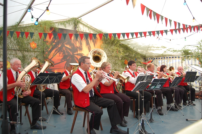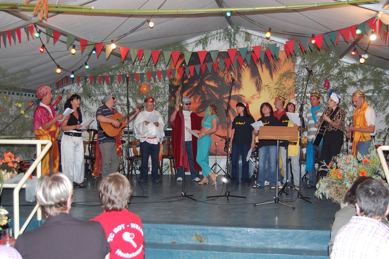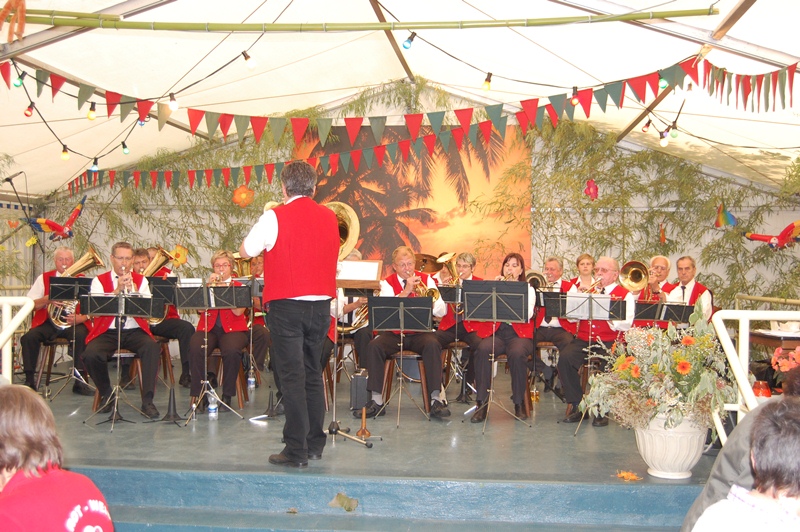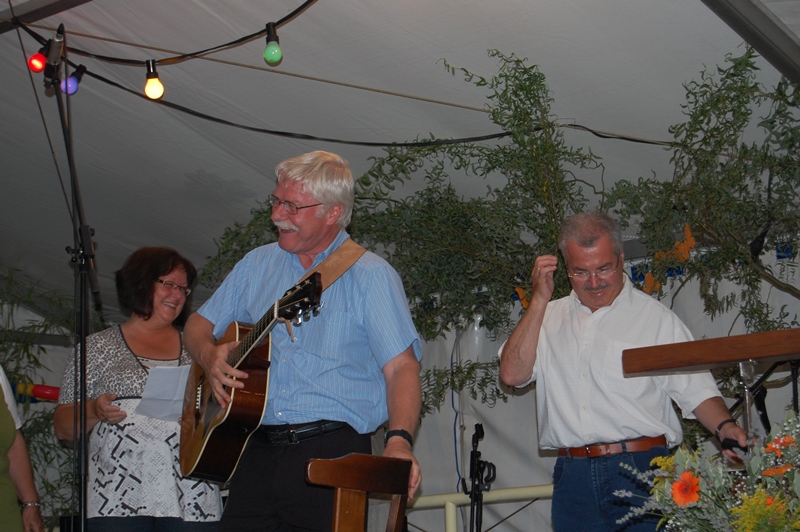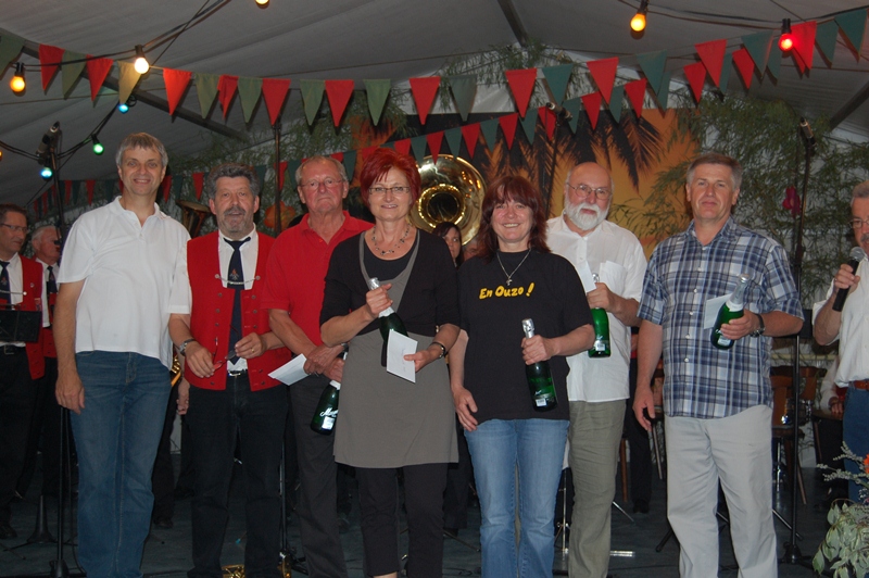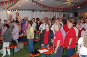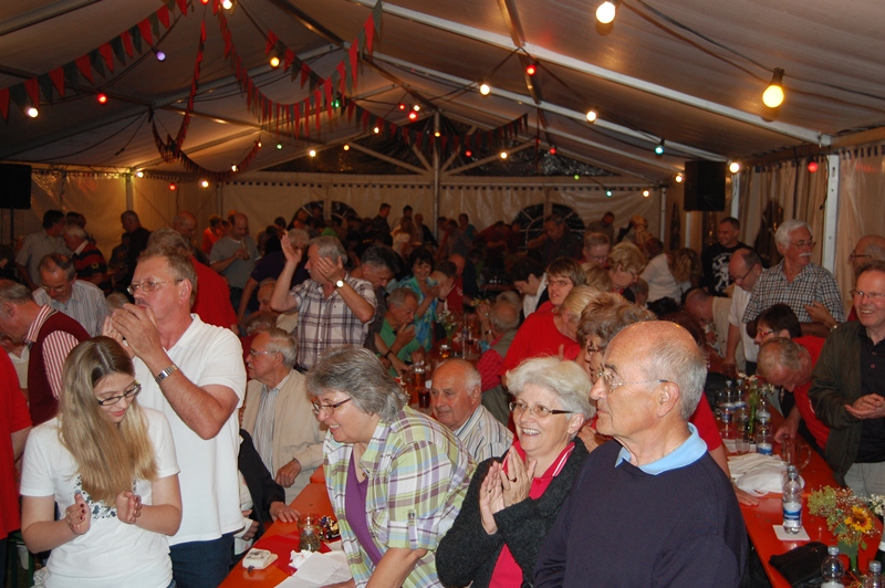 Moderator Rainer Ritz brachte mit seinen Witzen zusätzlich Stimmung ins Zelt. Durch unsere Beschallungstechnik mit Thomas Halter am Mischpult, kamen auch die Gäste im hinteren Bereich des Festzeltes in einen guten Hörgenuss.