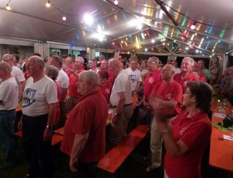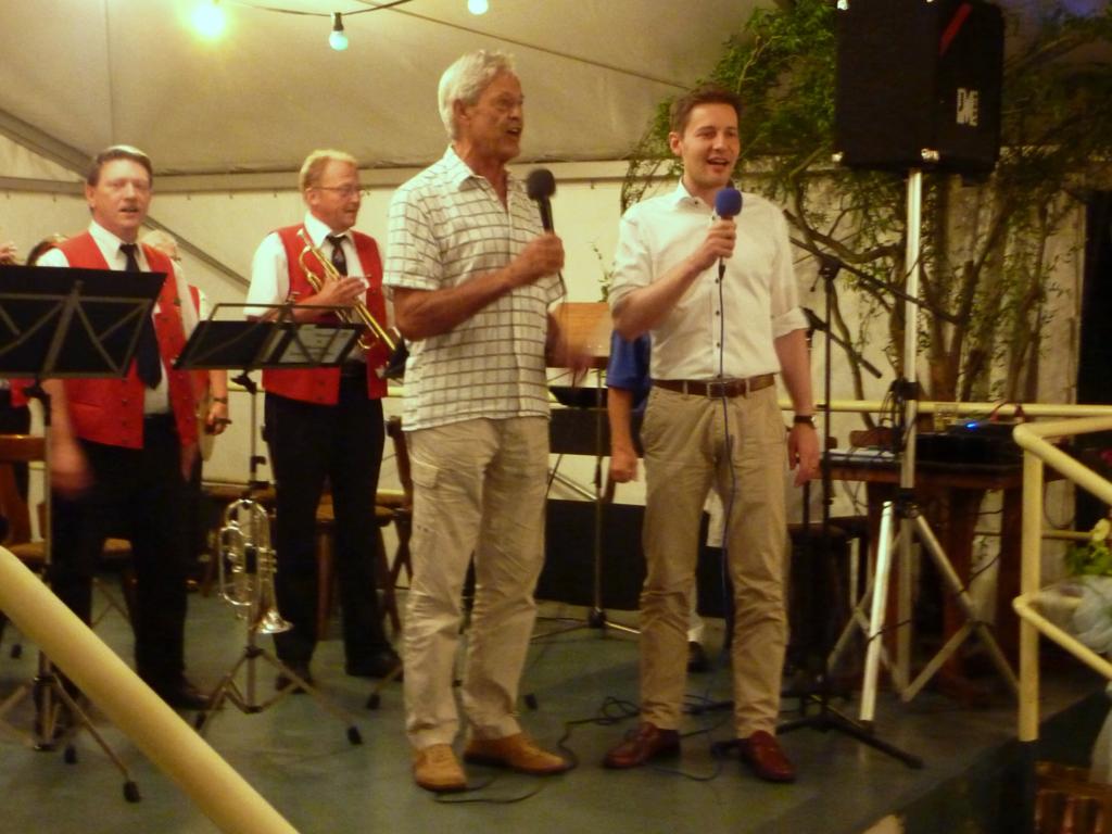 Unser junger Bürgermeister Michael Möslang, der von Rainer Ritz auf die Bühne gebeten wurde, holte sich mit Altbürgermeister Waldemar Schütz Unterstützung. Herr Möslang "musste" den ersten Vers des Badnerliedes ansingen und bestand hierbei die Feuertaufe. Bei diesem Lied hielt es niemand mehr auf den Sitzen und inbrünstig wurde mitgesungen. So klang ein unterhaltsamer und lustiger Abend langsam aus und die Einsatzteams konnten entspannt dazu sitzen. Nochmals herzlichen Dank allen, den aktiven wie auch den vielen passiven Mitgliedern, die alles super gemeistert haben - ohne euch wäre so ein tolles Fest gar nicht möglich!