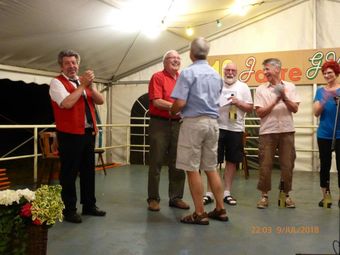 Jeweils ein Vertreter der Vereine durfte ein Sektpräsent als Belohnung für die Beiträge entgegen nehmen. Ein tolles Potpourri wurde uns von allen Gruppen geboten, herzlichen Dank für diesen schönen Abend. Ein Riesendank nochmal an alle „guten Geister“, die mit ihrem Einsatz den Erfolg unseres Festes ermöglichten. Das Helferfest dafür findet am 20.07. ab 20.00 Uhr statt. Schließlich ein Danke an alle Besucher während unserer Festtage, was wären wir ohne Euch....