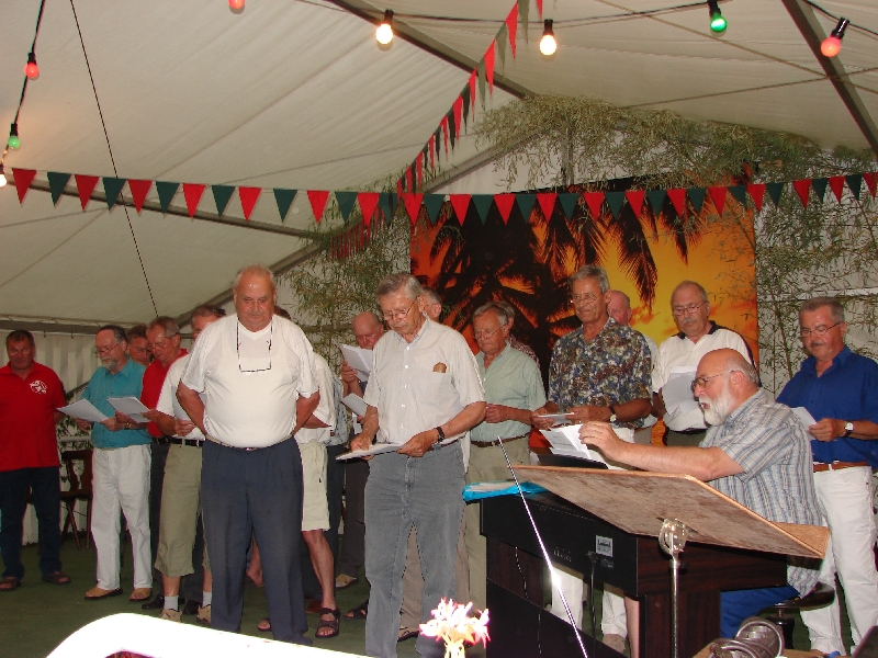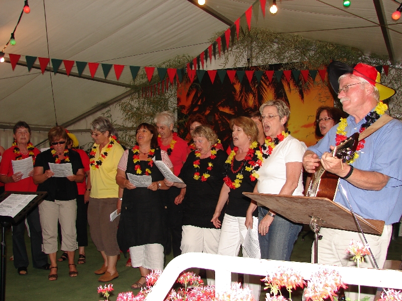 Die Herrentruppe des FVH bewies wieder einmal Mut, Blätter ausgeteilt und frisch gesungen hieß die Devise. Wolfgang König an der Gitarre sorgte für den richtigen Ton, Klaus König für Lacher mit seinen Ansagen.
