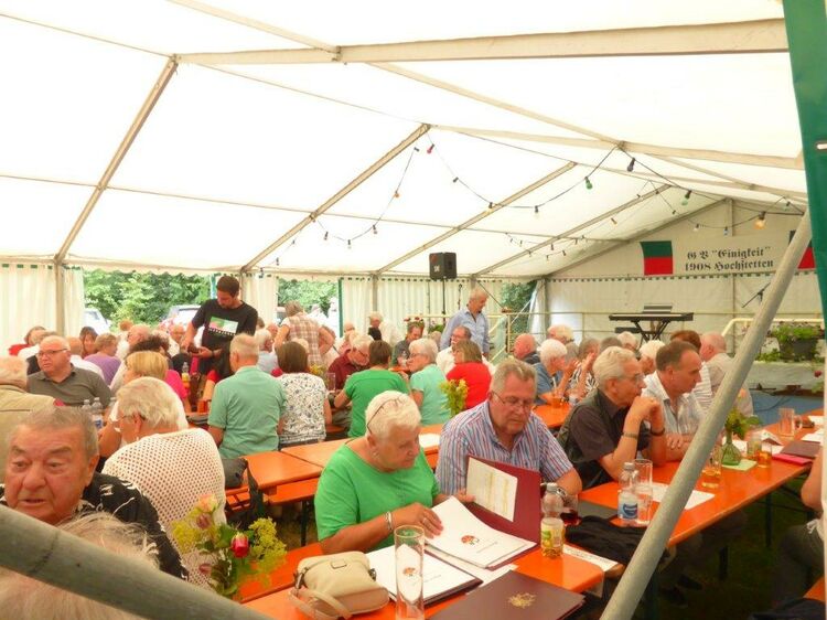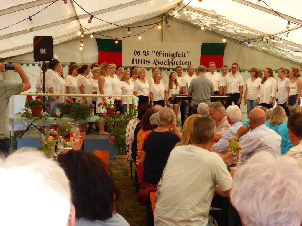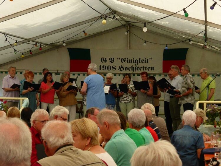 Wow, es hat am Sonntag im Erlich geboomt und hat all unsere Erwartungen übertroffen. Die ganze Mühe im Vorfeld hat sich gelohnt! Wir danken allen Helferinnen und Helfern, die sich bei uns engagiert haben, vor und während des Festes – ihr wart Spitze!! Unsere geänderten Festbeginnzeiten waren teilweise auch Coronafolgen geschuldet, aber der Freude unserer Besucher tat dies keinen Abbruch – danke auch euch allen fürs Kommen. Um 14.00 Uhr begann das Freundschaftssingen, das unser Chor mit vier Liedern eröffnete . Die gemischten Chöre: Liederkranz Spöck, Sängerbund Friedrichstal, GV 1873 Rußheim und der Liederkranz Graben haben unter der Leitung ihrer Dirigent(inn)en fabelhaft zum Programm beigetragen.