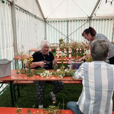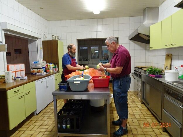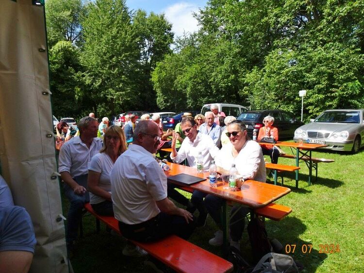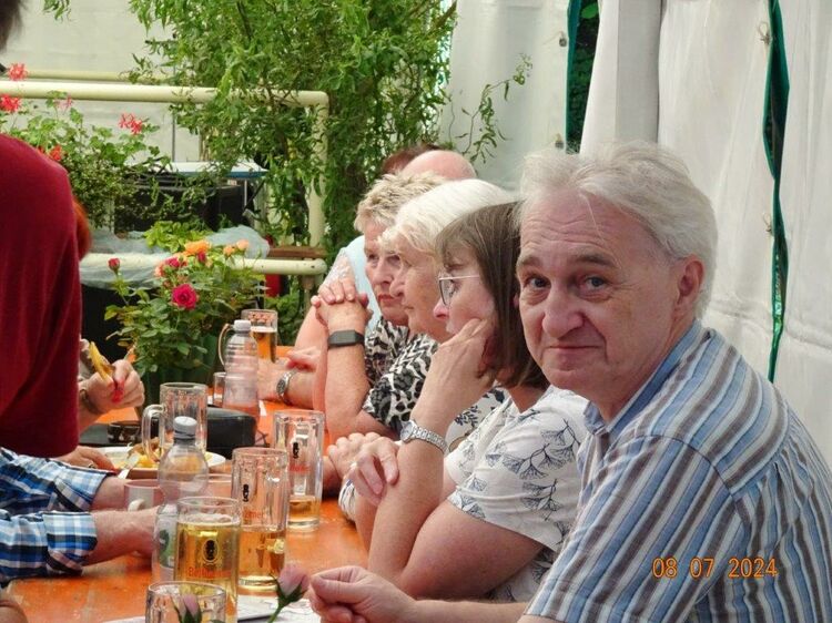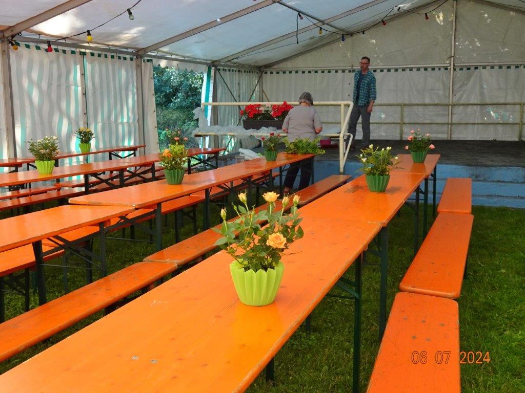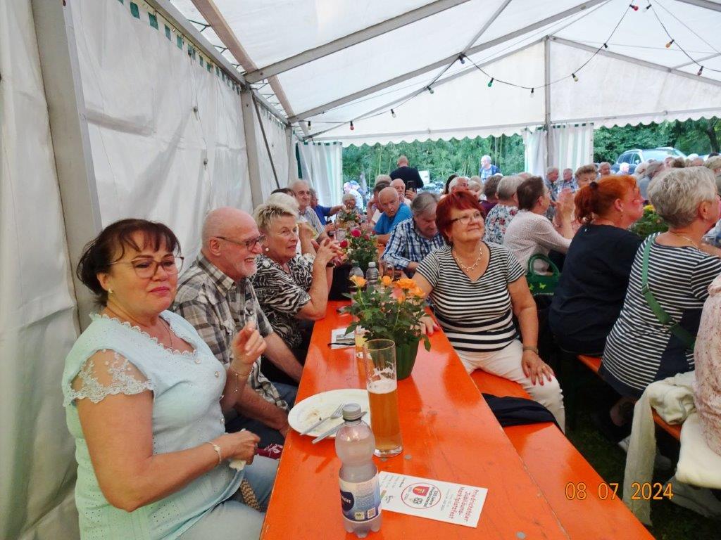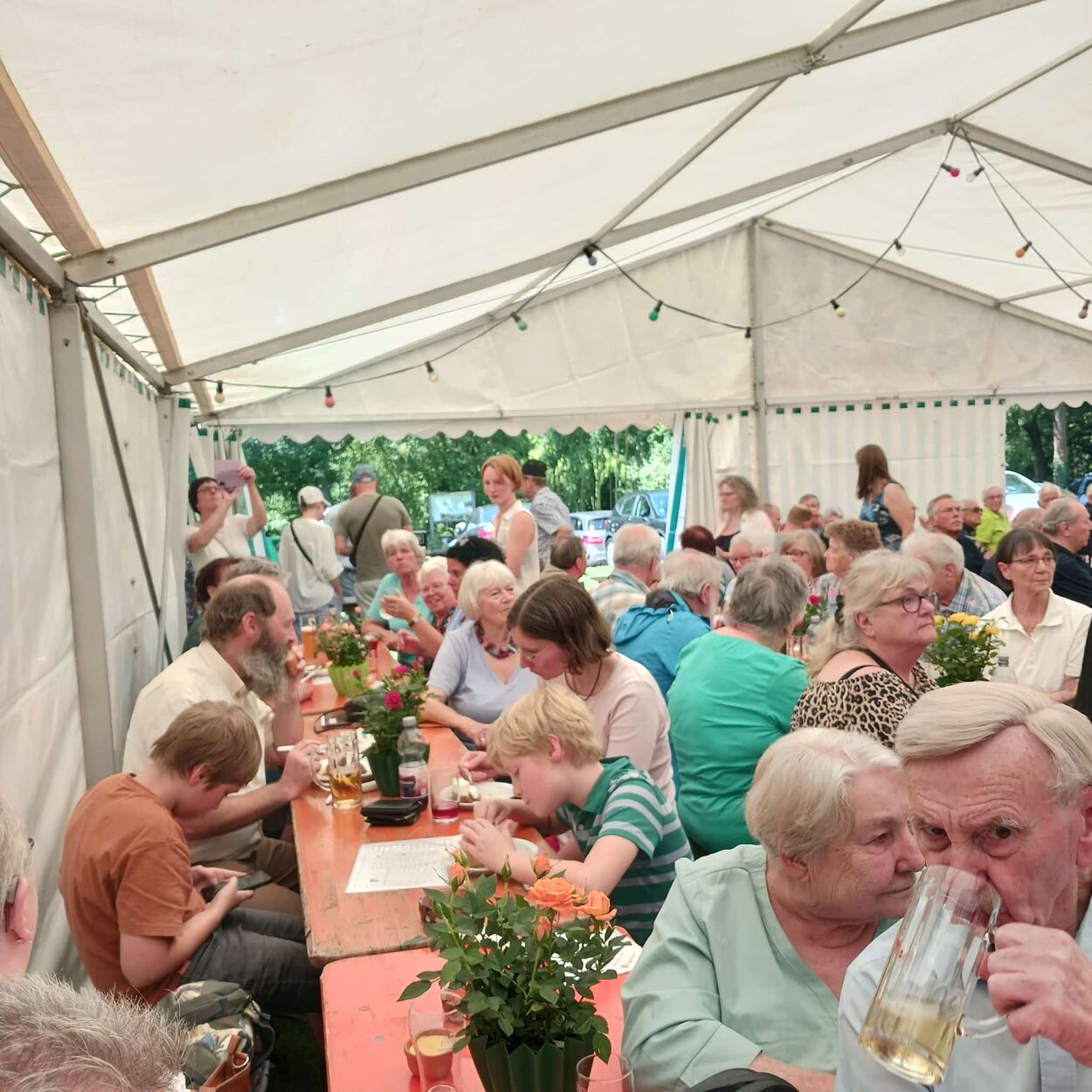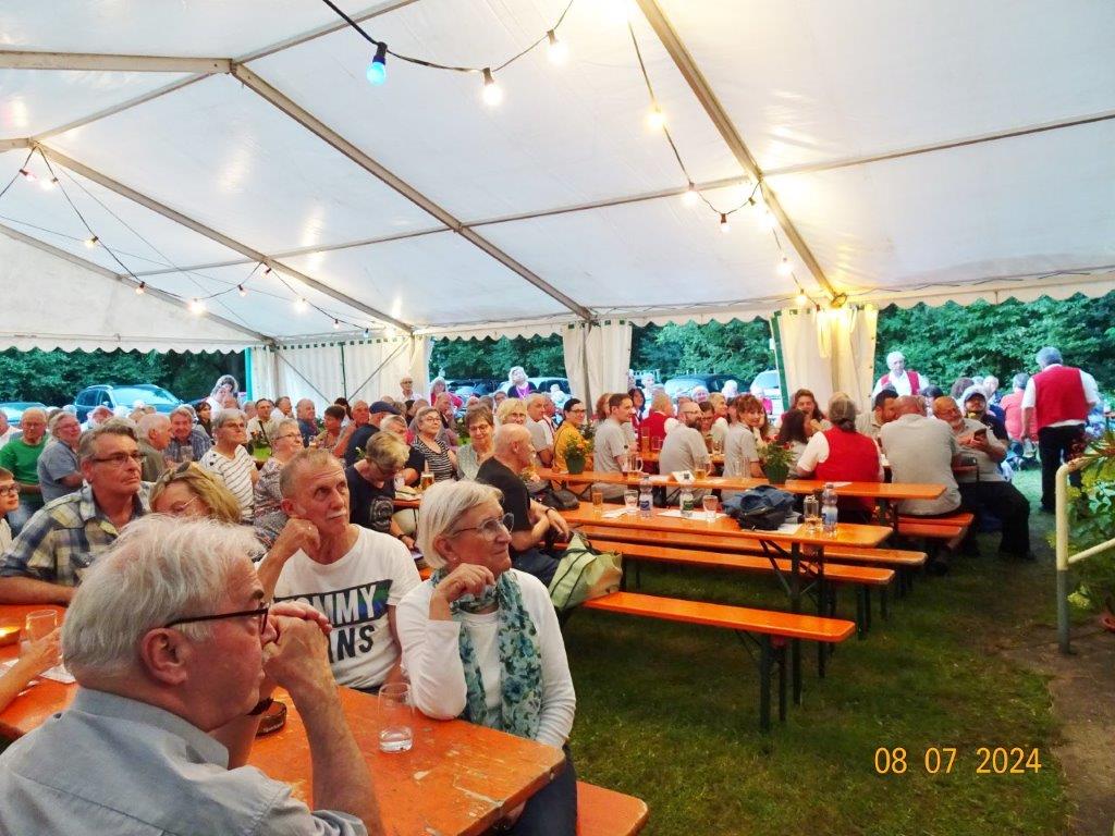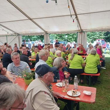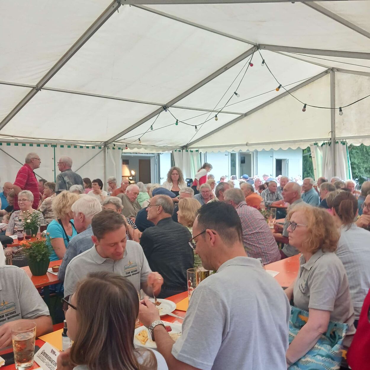 Nachdem der Zeltaufbau wegen des Regens von Mittwoch auf Donnerstag verschoben werden musste, war man doch etwas skeptisch, wie wohl das Wetter am Wochenende sein wird. Samstags regnete es sich ein Glück aus, so dass am Sonntag die Sonne für unser Fest scheinen konnte. Nach 13.00 Uhr füllte sich peu à peu das Zelt, später mussten sogar Garnituren im Außenbereich aufgestellt werden. In Küche und im Getränkebereich waren schon fleißige Hände im Einsatz, um unsere Gäste gut zu versorgen. Tolle Teams standen bereit und hier zuerst mal ein riesiges Dankeschön, für alle, die bei uns Dienst gemacht haben – ihr wart sensationell. Auch unseren Bäckerinnen ein Danke, die Kuchentheke war ständig belagert und später nahezu ausgeplündert. Montags wurde aber wieder für begehrten Nachschub gesorgt.