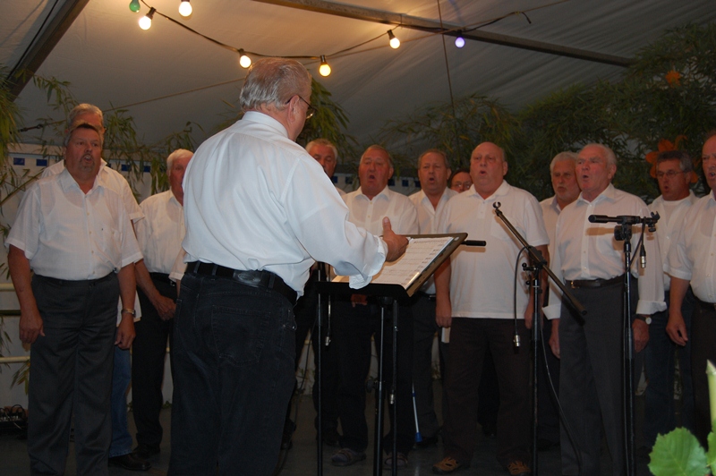 Rainer Ritz verabschiedete jeden Chor nach dessen gekonnt gesungenen Vorträgen mit einem Witz oder einer Anekdote von der Bühne. Wie in früheren Jahren sangen danach die Männer am Tisch sitzend noch viele Lieder.