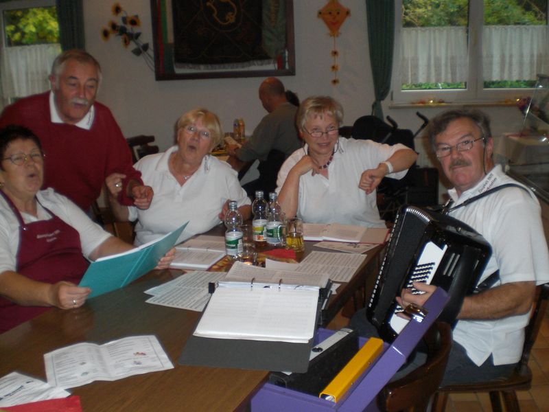 Zur Kaffeezeit wurde es etwas ruhiger und wir konnten unserem geliebten Hobby frönen. Klaus Eichsteller holte sein Akkordeon aus dem Koffer und spielte Unterhaltungsmusik. Helfer und Gäste sangen gemeinsam mit, es war urgemütlich.