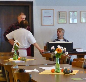 Unser Schlachtfest fand am Wochenende der Zeitumstellung (29. und 30. Oktober) statt. Es war eine lange, aber auch stürmische Nacht und der Sonntagmorgen trüb und regnerisch und einige waren skeptisch, ob sich bei diesem Wetter jemand auf den Weg in den Erlich macht. Aber siehe da, viele treue und auch neue Gäste erschienen pünktlich zur Mittagszeit. Das war eine echte Freude, stand unser Küchen- und Getränketeam doch schon frühzeitig zum Einsatz bereit. Nun gings rund und unser schön herbstlich dekoriertes Vereinsheim platzte fast aus allen Nähten. Den Gästen mundete es vorzüglich und auch das Kuchen- und Kaffeeangebot wurde gerne angenommen. Am Montag folgte der nächste Besucherstrom zur Mittagszeit und es schmeckte offensichtlich, auch unserem Bürgermeister, der kurz vor Ort war. Leider war die Kuchentheke frühzeitig geplündert, nächstes Jahr sieht das wieder anders aus.