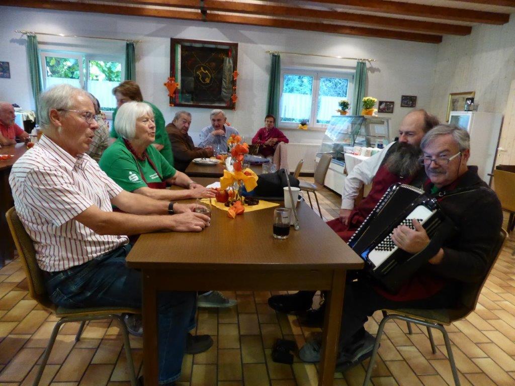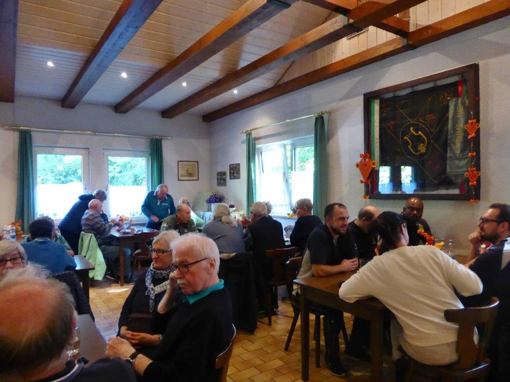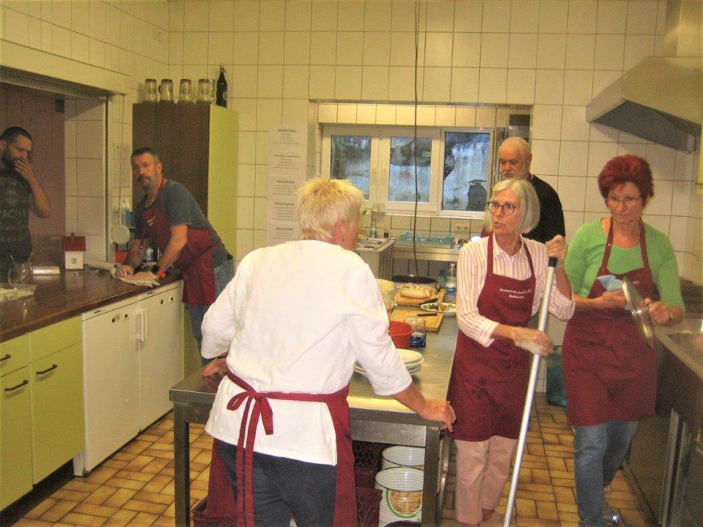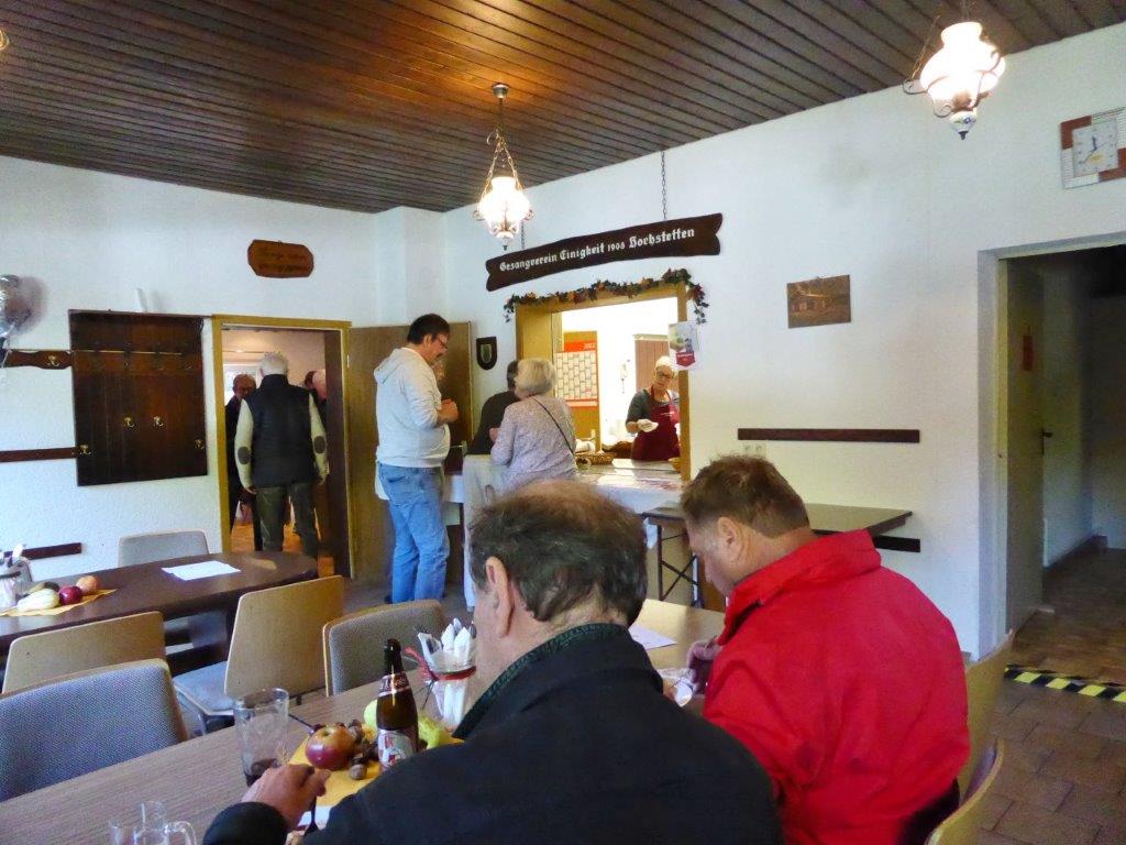 Bevor so ein Fest stattfinden kann, stehen natürlich auch viele Vorbereitungen an. Fleißige Helferinnen und Helfer fanden sich zuvor für die Außenarbeiten ein und samstags für das Richten des Vereinsheim, vielen Dank Euch allen. Unsere Rosi hatte sich mit schöner Herbstdeko sehr viel Mühe gemacht, das schafft doch gleich eine gemütliche Atmosphäre. Am Sonntagmorgen füllte sich bald die Kuchentheke und in der Küche herrschte emsiges Treiben, sollten doch die angebotenen Speisen fertig sein, wenn sich die Gäste einfinden würden. Es hat alles supergut geklappt und das Küchenteam war für den Ansturm gewappnet. Klaus Eichsteller sorgte später mit seinem Akkordeon für Stimmung und es wurde gerne mitgesungen. Im Laufe des Nachmittags war die Kuchentheke geplündert und zur Vesperzeit fanden sich wieder neue Gäste ein. Ein Kommen und Gehen und auch montags funktionierte das alles wieder gut. Neue Kuchen wurden gebracht und pünktlich um 11.30 Uhr fanden sich die ersten Gäste ein. Das Vereinsheim füllte sich nach und nach, auch unser Bürgermeister Herr Möslang fand sich ein, ebenso Betriebsangehörige, die bei uns ihre Mittagspause machten – danke für die Treue zu unserem Verein. So lief auch dieser Tag gut für uns. Die Zusammenarbeit, mit toller Unterstützung unserer beiden passiven Mitglieder Beate und Tobias hat sehr gut geklappt, auch hierfür ein ganz großes Dankeschön! Auch dem emsigen Putzteam, das zum Festende wieder alles blitzeblank wienerte ganz herzlichen Dank! Fazit: Das war ein gelungenes Fest, dank vieler Helferinnen und Helfer und unserer lieben Gäste! Nächstes Jahr gerne wieder.