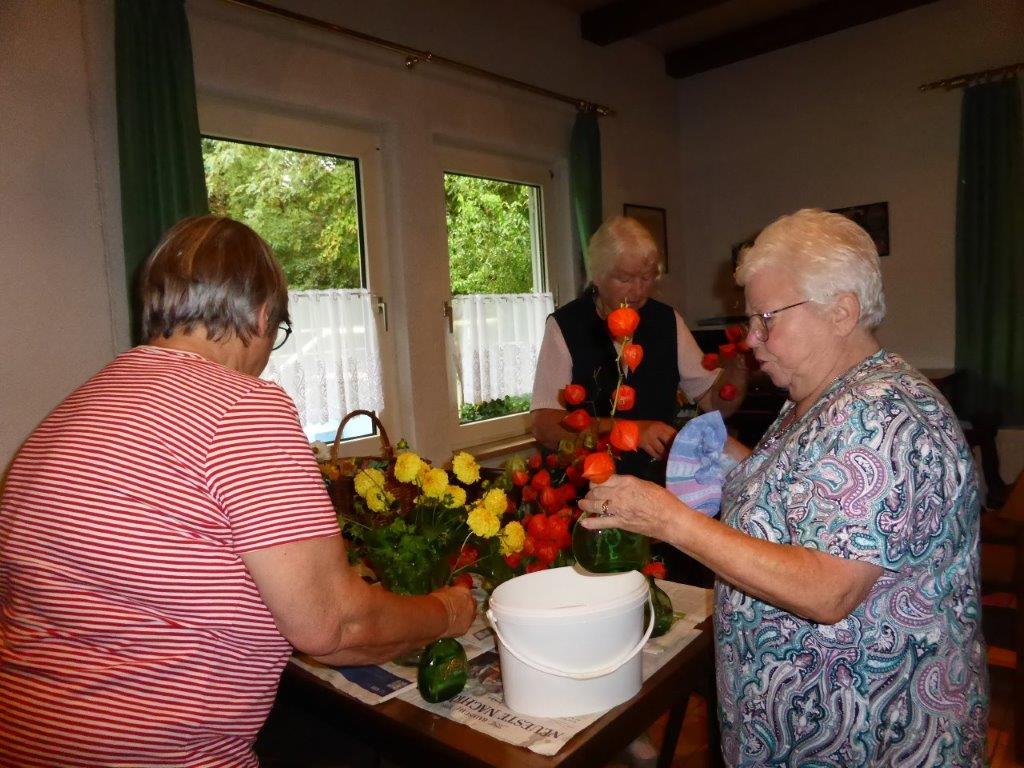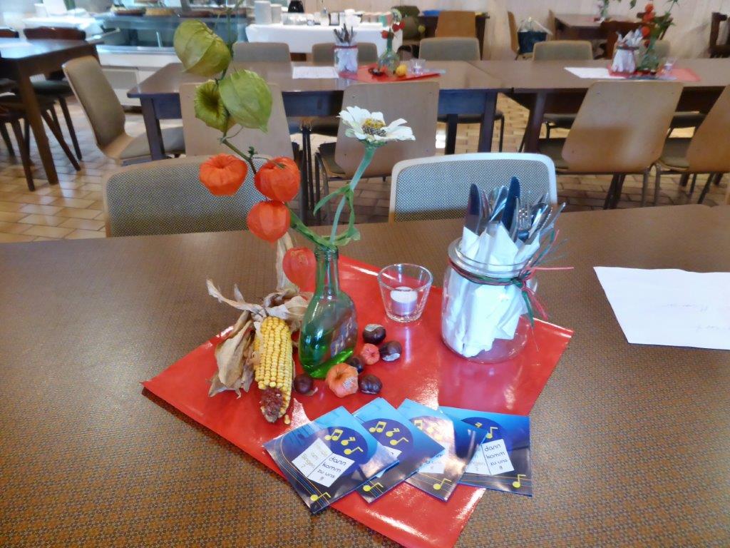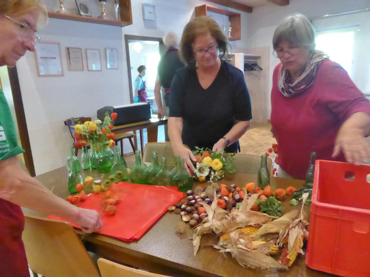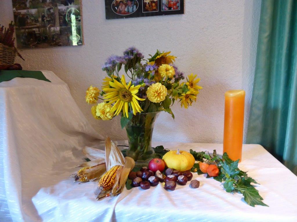 Samstags ab 9.30 Uhr fanden sich fleißige Helferinnen und Helfer im Vereinsheim im Erlich ein, um Vorbereitungen für das Schlachtfest zu treffen. Das Mobiliar wurde aufgestellt, inklusive der Kuchentheke und Vorkehrungen in der Küche getroffen. Unsere Rosi hatte ihren Garten geplündert und Ute`s Blumenschmuck ergänzt, so konnte es an die Tischdeko gehen, dazu passten auch wieder gut Kastanien. Die Kühlschränke wurden mit Getränken gefüllt, denn auch da wollten wir den Pfälzern nicht nachstehen. Sonntags ging es früh in der Küche los, um rechtzeitig alles für die Besucher gerichtet zu haben. Würden sie trotz Kirwe kommen? Ja, sie kamen, wir waren überwältigt. Die Sonne zeigte sich und wir konnten sogar draußen einige Biergarnituren aufstellen, die ruckzuck belegt waren. Das deftige Essen war begehrt und hat rundum geschmeckt und auch die Kuchentheke war immer wieder belagert. Wir danken all unseren Besuchern, schön, dass Ihr da wart und allen, die am Sonntag im Einsatz waren, Ihr wart großartig!!