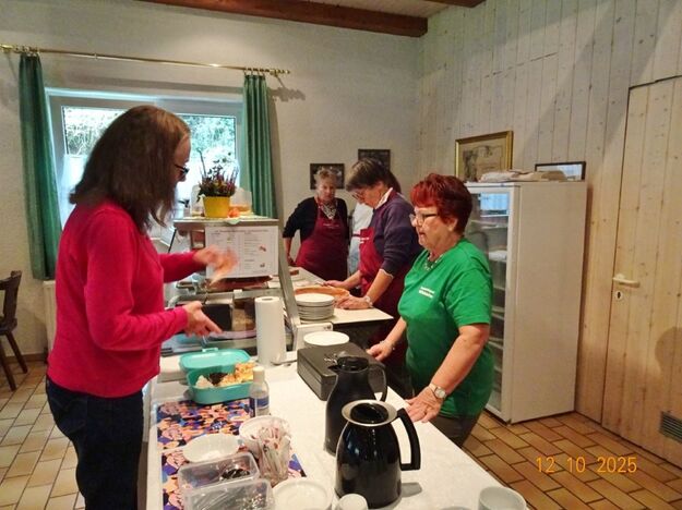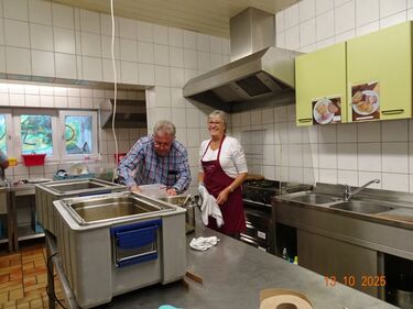 Samstags war ebenso eine Arbeitsgruppe im Einsatz, die das Vereinsheim für die Gäste herrichtete und mit herbstlicher Deko verschönte. In der Küche war Großeinsatz mit den Vorbereitungen für das leibliche Wohl der erwarteten Gäste. Die kamen dann auch am Sonntag so nach und nach in unser Vereinsheim und wie man hörte, hat das deftige Essen gemundet. Die verschiedenen Ressortleiter haben sich mit ihren Teams bewährt und die Gäste gut bewirtet. Auch die Kuchentheke war immer wieder belagert, denn dort lockten leckere Torten und Kuchen unsere Besucher an. Zur Unterhaltung gab´s Akkordeonmusik von Klaus Eichsteller.