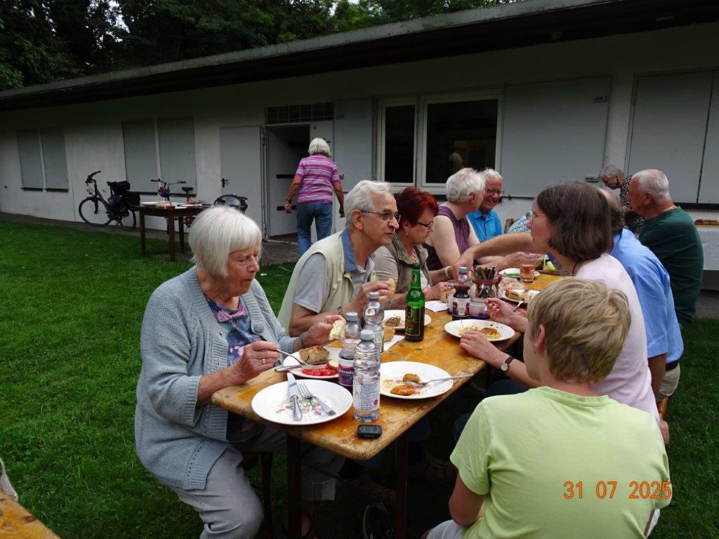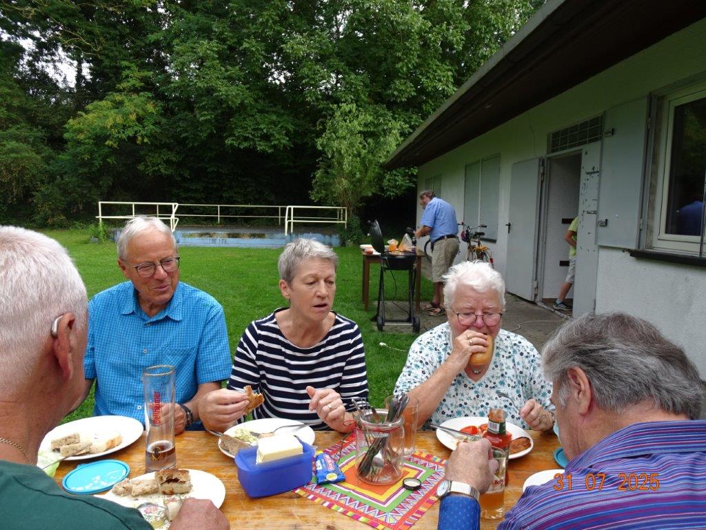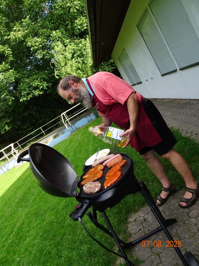 Auch in den Ferien gibt es Programm beim GV Einigkeit. Unser Greenkeeper Markus lud an zwei Abenden zum gemeinsamen Grillen ein. Der schön gemähte Rasen bot sich dafür an und schnell waren Garnituren aufgestellt und das Wetter passte beide Male. Jeder hatte sein Grillgut mitgebracht, um mit Markus seinen neuen Grill einzuweihen. Natürlich gab es auch leckere Beilagen, wobei das selbstgebackene Foccacia von Hannelore, die Kräuterbutter von Markus und der Avocado-Schafskäse-Dip von Jola die Renner waren. Wir saßen in gemütlicher Runde und angenehmer Unterhaltung beisammen. Danke an alle für diese gelungenen Abende. Bei schönem Wetter möchte Markus evtl. am 21.08. nochmal grillen, Nachricht kommt auf unserem Canale.