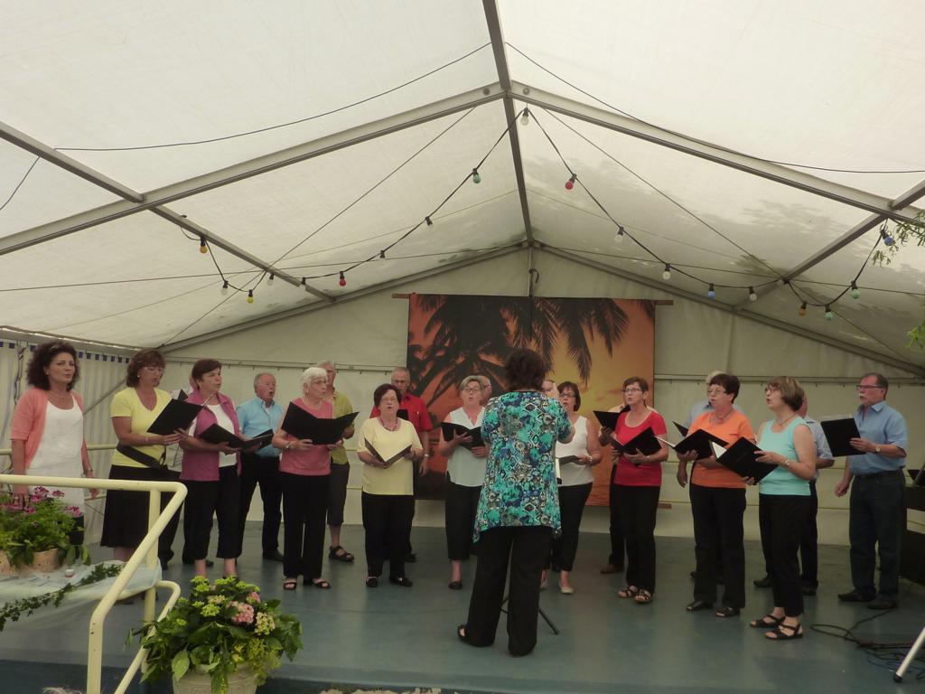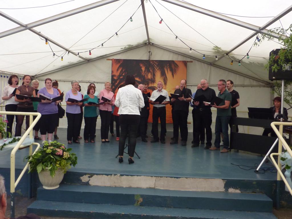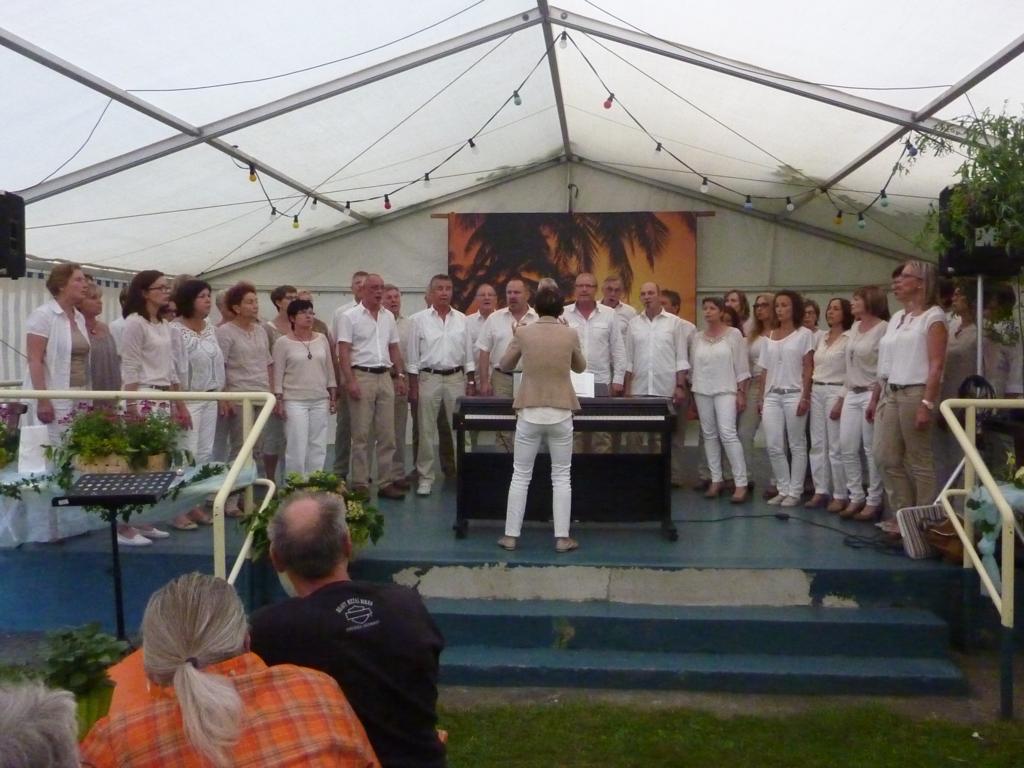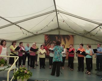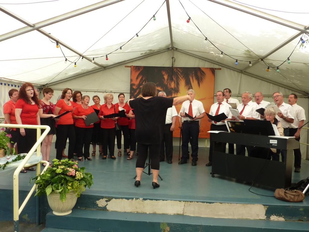 Am Sonntagabend war Einsingen unseres Chores im schönen Garten von Vreni und Norbert, danke für die Erfrischung. So vorbereitet eröffneten wir um 18.00 Uhr mit drei Liedern den "Abend der modernen Chöre". Maika Torge übernahm hier in bester Manier, mit musikalischen Anekdoten und Fragen zu traditionellem Liedgut an die jungen Chöre, die Moderation - super, danke Maika! Mit den Chören "da Capo" (Liederkranz Graben), "die Vocaleras" (Frauenchor aus Karlsruhe), Mikadochor (Nordstadt Karlsruhe), "Klinikchor" (Städtisches Klinikum Karlsruhe) "Gsang for fun" (Sängerbund/Liederkranz Heidelsheim), "Coro minuetto" (Sängerbund Linkenheim)und "JCK-das setzt sich" (KIT Campus Süd) hatten wir ein Programm, das viele Herzen höher schlugen ließ. Jeder Chor präsentierte sich wunderbar auf seine Weise und man konnte die Bandbreite der modernen Chormusik erahnen. Das war wirklich ein Highlight unseres Festes!