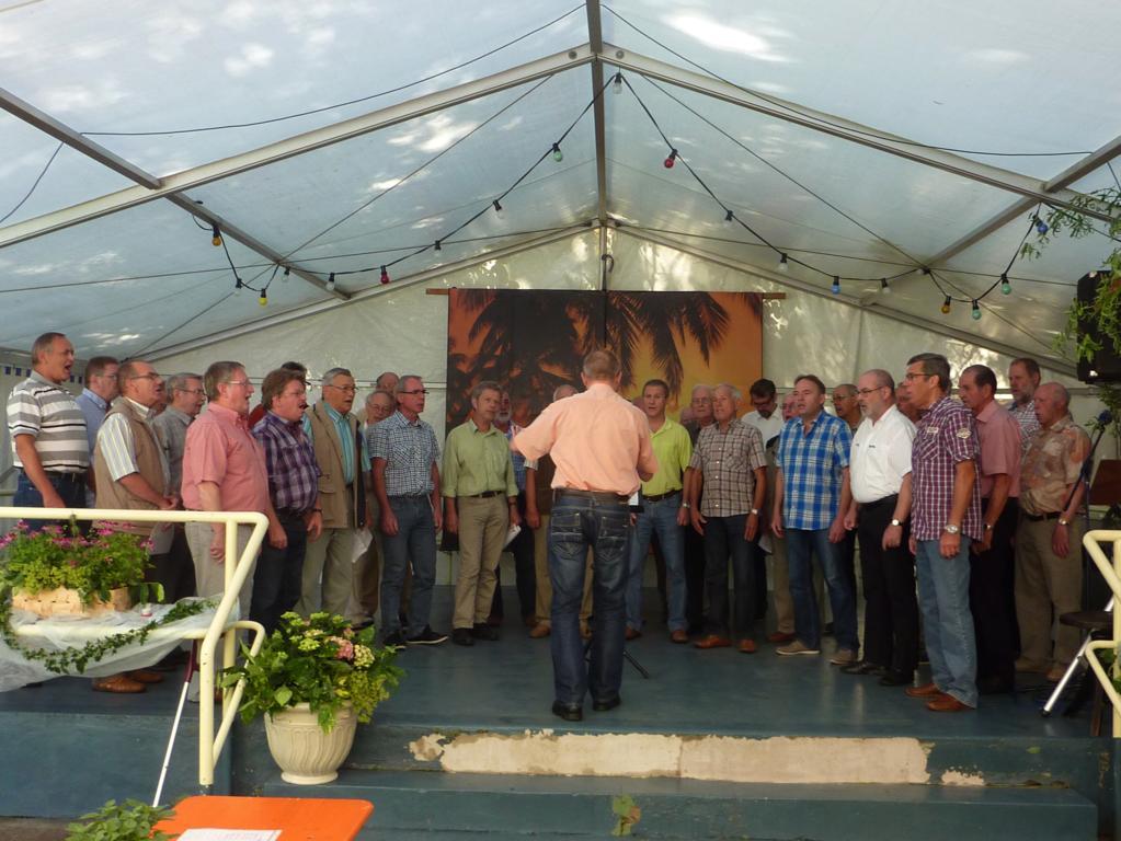 begann sonntagmorgens mit Weißwurstfrühstück und einem musikalischen Frühschoppen. Leider hatten kurzfristig zwei Chöre ihre Teilnahme abgesagt. Aber die Sängervereinigung Liedolsheim, der Sängerbund Blankenloch, die Chorgemeinschaft Philippsburg und natürlich unser Chor unterhielten die Festzeltbesucher mit stimmigen Liedern.