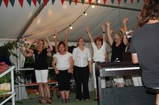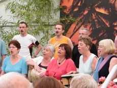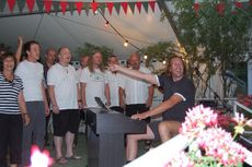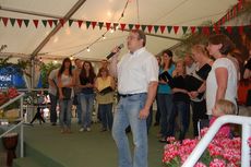Modern Harmony brachte das Festzelt mit populären Liedern völlig aus dem Häuschen. Kofler, ein Virtuose am Piano und Komödiant erster Klasse, schlüpfte mit witzigen Ansagen in die Rolle des Entertainers und wurde mit Standing Ovations und stürmischen Zugabe Rufen gefeiert. Schließlich wurde uns das Versprechen abgerungen, das nächste Mal Pfälzer Schorlegläser für den ganzen Chor zu besorgen.