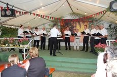 Am Sonntag um die Mittagszeit konnten sich die Besucher im Festzelt nicht nur das Mittagessen schmecken lassen, es gab auch einen Augen- und Ohrenschmaus dazu. Die Singflöhe vom Sängerbund Linkenheim mit ihrer Dirigentin Patricia Voss begeisterten mit ihrem Auftritt jung und alt.