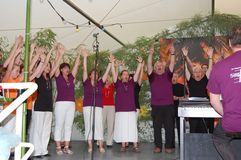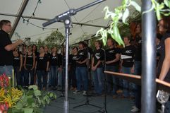 Der junge Chor “Sempre Verde” vom GV Untergrombach bot ebenfalls einen Ohrenschmaus mit „Silence ist golden“, „Hallelujah“ von L.Cohen und einem Love Songs-Medley, arrangiert von seinem Dirigenten Rainer Kneis. Das Publikum im vollbesetzten Festzelt lauschte genüsslich und manche sangen sogar, leise natürlich, die bekanntesten Passagen mit.