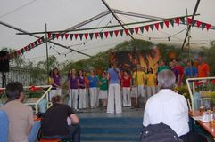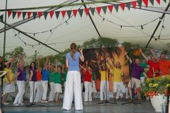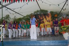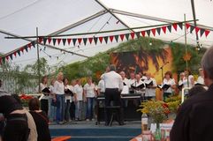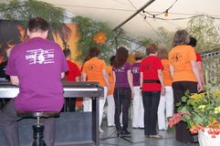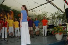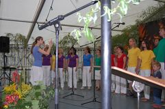 Unsere Gastchöre am Sonntag deckten ein breites Spektrum der Chorliteratur ab. Während sich unsere Gäste das Mittagessen schmecken ließen, wurden sie vom Kinderchor „Singflöhe“ vom Sängerbund Linkenheim unter der Leitung von Patricia Voss unterhalten. Voll Begeisterung und Freude sangen sie die Lieder „Meine Mami“, „Pinguin Fridolin“, „Flummi-Lied“, „Mein Pony Paulchen“ und „Wir sind Kinder“ in einem voll besetzten Zelt. Das Publikum war entzückt von den Kleinen.