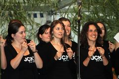 In Erinnerung an die grandiosen Darbietungen der Jungen Chöre bei unserem Sängerfest 2010 freuten wir uns schon riesig auf den Sonntagabend, der 2011 wieder ein Feuerwerk von erstklassiger moderner Chormusik werden sollte. Wir wurden nicht enttäuscht. Unsere aktive Sängerin Monika Hörmann moderierte wie in den vergangenen Jahren sehr charmant den Abend. Sie hatte sich perfekt vorbereitet und informierte das interessierte Publikum über alles Wissenswerte zu den einzelnen Chören.