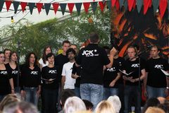 Last but not least oder das Beste zuletzt? Wir freuten uns auf alle Fälle auf den „JCK – Das setzt sich“ von der Universität Karlsruhe. Unter der Leitung ihres jungen Dirigenten Michael Hegenauer zeigten die dynamischen Sängerinnen und Sänger mal wieder wie gewohnt ganz locker was sie so drauf haben. Ob „The Entertainer“ oder „The longest time“ und „And so it goes“ aber auch „An Englishman in New York“ wie auch „Africa“ und zuletzt das besonders reizvoll und interessant vorgetragene „Das Rendezvous“ – alle Stücke wurden mit reichlich Beifall belohnt.