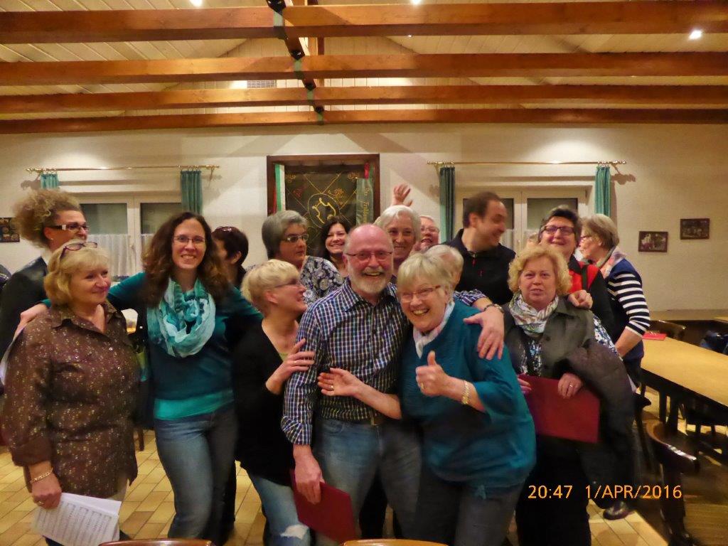 Zur ungebrochenen Freude aller Beteiligten, fand Freitag 15.04. unsere dritte Projektchorprobe statt. Rose und Henry kamen direkt von ihrer Holland-Reise zur Singstunde und brachten „Tulpen aus Amsterdam“ für die Sängerinnen mit - eine tolle Idee. Auch Robert hatte eine solche und spendierte uns leckere Butterbrezel und Getränke anlässlich seines Geburtstages und Hannelore Dürr kredenzte uns selbstgemachten Eierlikör. Man sieht, es geht uns auch nach der Singstunde hervorragend – ein großes Dankeschön an alle Spender.
