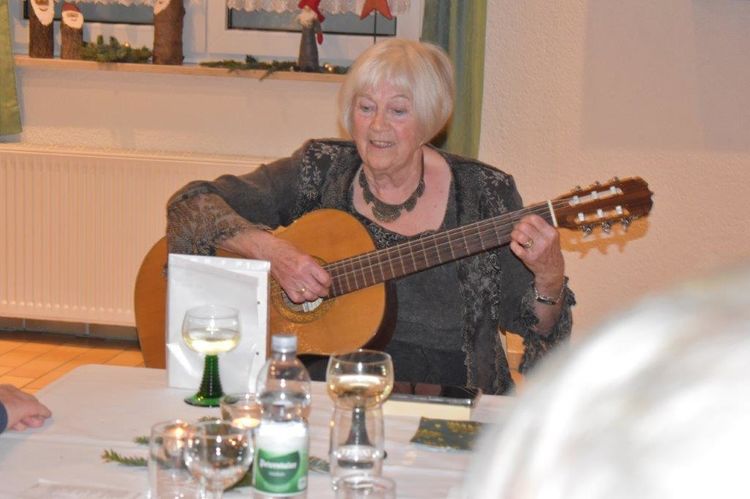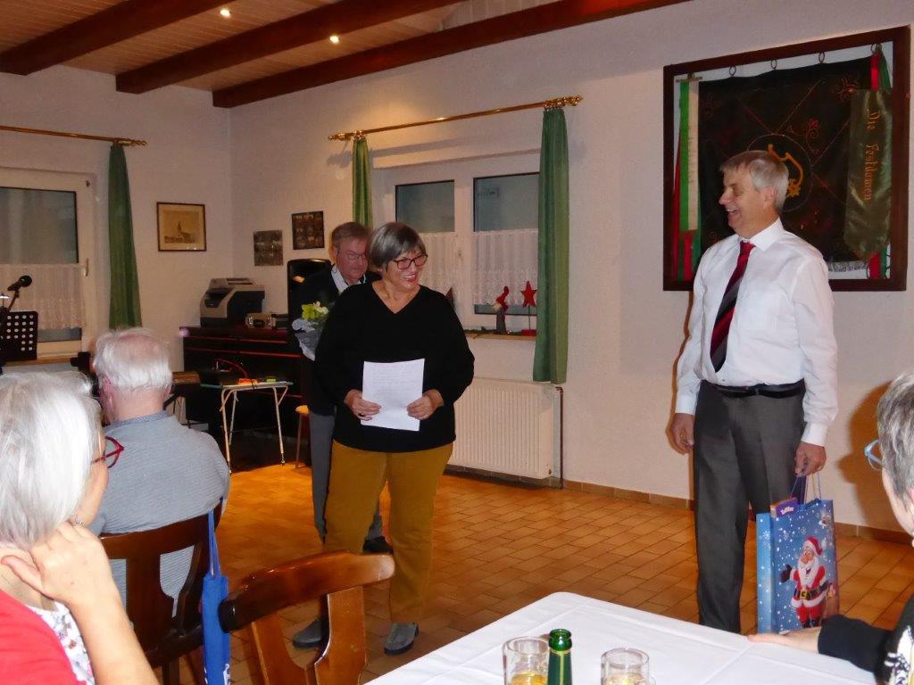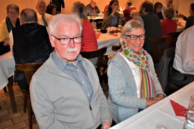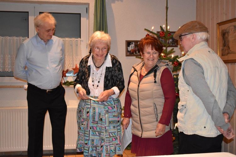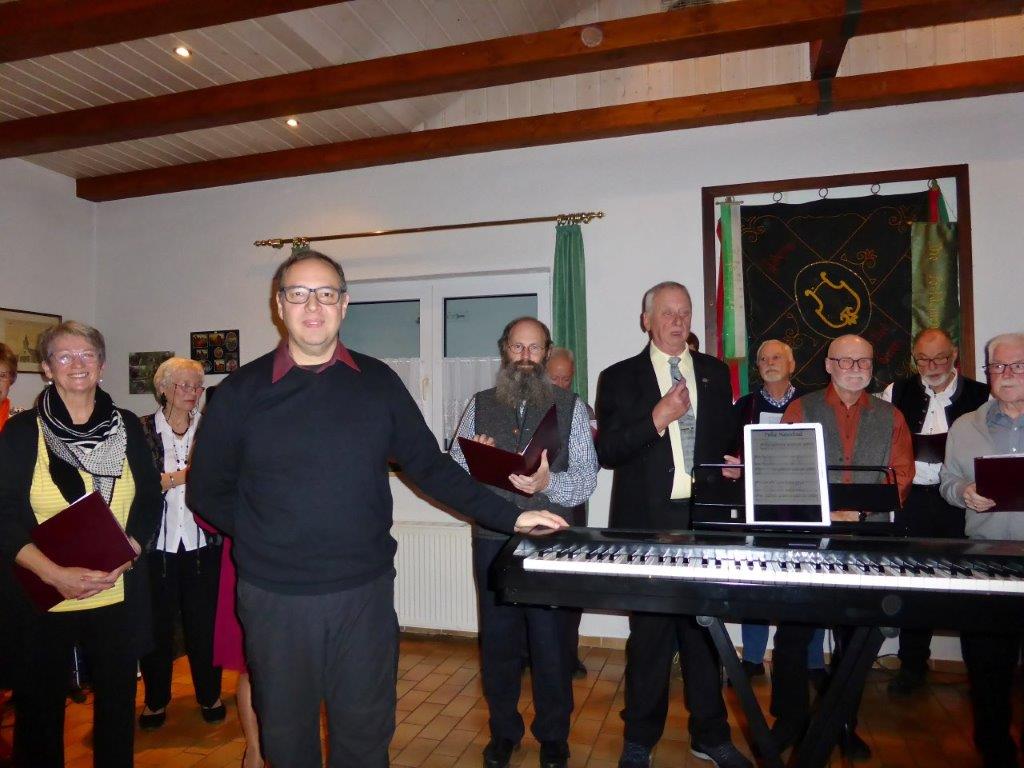 Endlich durften wir nach 3 Jahren wieder im Erlich zusammen kommen und mit Tannenbaum, Kerzenlichtern und festlicher Stimmung an den Tischen Platz nehmen. Unser Vorstand Klaus Reinhardt begrüßte alle Anwesenden und wünschte einen schönen Abend und den hatten wir. Zuerst sangen wir mit Aldo sechs Weihnachtslieder, eine gute Mischung und Rainer Ritz durfte beim „Weihnachtsgesang“ als Solist brillieren, gekonnt ist eben gekonnt! Dann konnte das von Vanny gelieferte warme Buffet eröffnet werden, das war auch gelungen, einschließlich der feinen Salate unserer Sängerinnen. Mit Getränken wurden wir auch versorgt, da waren unsere drei fleißigen Küchenfeen im Einsatz und wir konnten das leckere Essen entspannt genießen. Im Anschluss überreichte Klaus Reinhardt unserem Dirigenten Aldo Martinez eine Weihnachtstüte mit Dankesworten, über die sich Aldo sehr freute und sich bedankte. Leider musste er unsere Feier schon verlassen, da er noch eine andere familiäre Verpflichtung hatte. Nun übernahm unsere Sängerin Ute König das Zepter und führte uns mit sehr viel Gefühl durch das Programm. Heidi und Klaus Eichsteller eröffneten den Reigen mit einem musikalischen Beitrag, es folgte Christa Jung-Wittiger mit einer Weihnachtsgeschichte, wie eine köstlich gebratene Ente unerwartete Gaumenfreuden für Obdachlose unter einer Brücke bescherte. Klaus Reinhardt verlas auch eine in diese unruhige Zeit passende Geschichte, gefolgt von einem schönen Gedicht, das Hildegard Setzchen vorlas. Hannelore Dürr hatte eine rührende Geschichte über ein Enkelkind und eine verlorengegangene Masche in einem von ihm selbst gestrickten Schal, den die Oma bekommen sollte. Reinhilde Fürniß hatte ihre Gitarre dabei und sang uns das Lied „Joseph“ von Georges Moustaki – sehr gut, Reinhilde. Das Flötenspiel von Heidi Eichsteller beeindruckte auch, ebenso die Stücke, die uns Klaus Eichsteller auf seinem Keybord vorspielte. Nun war es Zeit für eine süße Pause! Unsere Helferinnen hatten emsig die Desserttafel gedeckt mit feinen Cremes, Obstsalat, Plätzchen, Orangenkuchen, ja sogar warmen Apfelstrudel mit Vanillesoße, frisch gebacken und serviert von unserem Koch Robert. Dankeschön, da gings uns doch wieder richtig gut!! Da konnten wir der „hinterlistigen Geschichte“ von Rainer Ritz gewappnet entgegensehen. Hartmut sang uns danach das Lied einer fränkischen Weihnacht mit einer knusprig gebratenen Weihnachtsgans, die sich wohl nicht rechtzeitig in Sicherheit gebracht hatte und sogar der Oma, püriert durch den Strohhalm gesogen, mundete. Super Hartmut! Nun folgte ein Sketch unter der Regie von Klaus Eichsteller mit einem ganz aktuellen Thema: Glasfaser und Hotline! Von den ewigen Warteschleifen bei Anruf der Hotlines kann doch bald jeder ein Lied singen. Das bekam auch die Familie Wockenberg zu spüren, authentisch gespielt von: Heidi Eichsteller und Robert Schnell und Tochter: Jola Strzlecka und Rainer Ritz, der den schlitzohrigen Opa mimte. Köstlich, was dieser Sprachcomputer am Telefon versteht und letztendlich nicht an den nächsten freien Mitarbeiter verbindet, sondern den Anrufer zur Verzweiflung und gar zur Aufgabe bringt. Tolle Vorführung, danke den Akteuren! Heidi und Klaus Eichsteller beendeten mit einer Musikeinlage das Abendprogramm, natürlich in französisch, Heidi´s Spezialität, très bon! Überhaupt an Heidi und Klaus ein riesiges Dankeschön, haben sie doch einen Großteil des Programms gestaltet. Auch allen anderen Mitwirkenden des Abends vielen Dank, unserer Ute, die uns gekonnt durchs Programm führte, dem Küchen-Service-Team, unserem Vorstand für den tollen Weihnachtsbaum und merci für all die leckeren Salate und Desserts – fein gemacht.