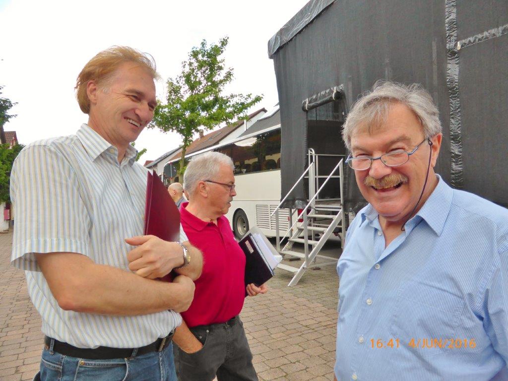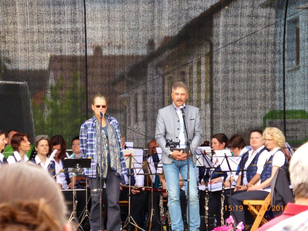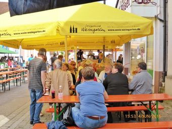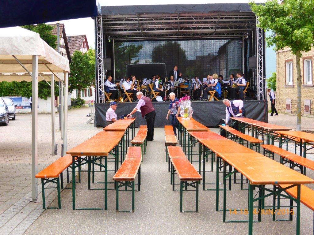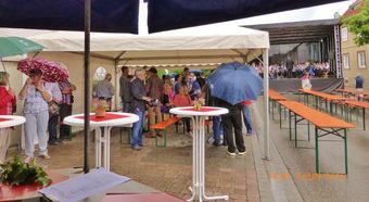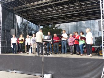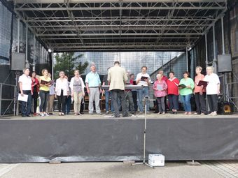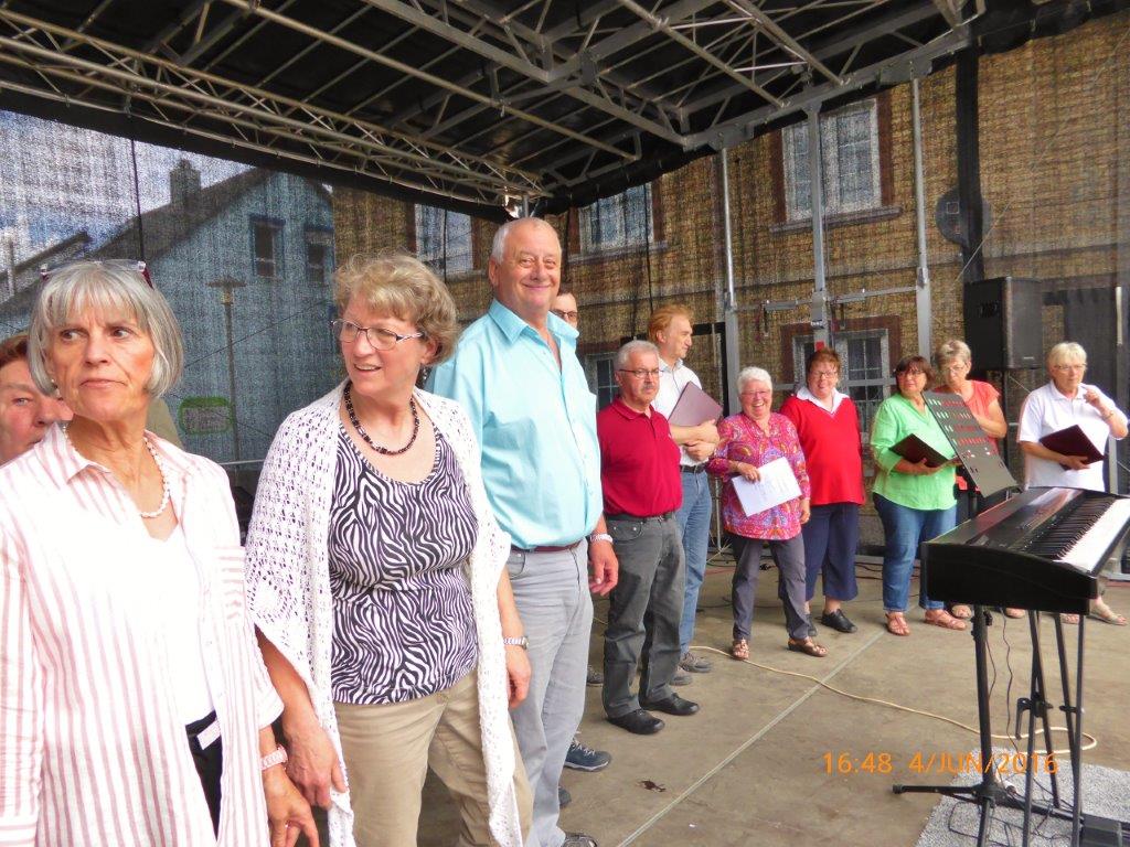 Am Samstag 04.06. morgens um 9.00 Uhr begann der Arbeitseinsatz für das Weschbugglfeschd. Pünktlich zum Festbeginn um 14.30 Uhr setzte der Regen ein, der aber ein Glück, nicht lange andauerte. Nachdem alle Tische und Bänke wieder abgewischt waren, konnte das Weschbugglfeschd und 50 Jahre Partnerschaft mit Jarny gefeiert werden. Auf der Festbühne fand ein entsprechendes Programm statt, an dem sich auch unser Verein mit Liedern aus unserem Konzert beteiligte. Leider hat das mit der Akustik nicht so gut funktioniert, nur das Publikum in Bühnennähe konnte uns gut hören. Es waren auch andere Vereine und Beiträge betroffen, schade, dadurch wurde das tolle Programm doch etwas beeinträchtigt. Aber der Feierlaune des Publikums tat dies keinen Abbruch, zumal sich inzwischen sogar die Sonne zeigte.