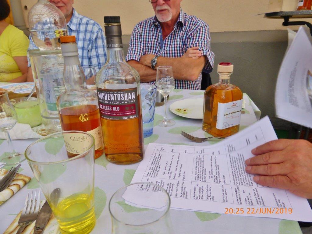 Der dritte „Lowlandwhisky“ stellte sich bei genauerem Hinsehen als Fake heraus. Der Single Malt Glen Buchenbach ist nämlich ein deutscher, genauer ein schwäbischer Whisky. Die Brennerei Buchenbach-Berglen in der Nähe von Winnenden gelegen liegt seit Jahren mit den Schotten im Streit über den Namenszusatz „Glen“, der im schottisch gälischen Tal bedeutet und bei den Schwaben einfach die letzten vier Buchstaben des Ortsteiles Ber-glen sind – gnitze Schwaben halt. Die Schotten haben gegen diese Bezeichnung geklagt. Es ging schon mehrfach hin und her, im Moment sind die Schotten wieder im Vorteil, aber der Streit ist noch nicht beendet. Und bevor es diesen Whisky nicht mehr gibt, wollten wir ihn halt probieren. Obwohl ein deutsches Erzeugnis, war er seinem Vorgänger nicht unähnlich. Nicht so alt, dafür 3% mehr Alkohol.