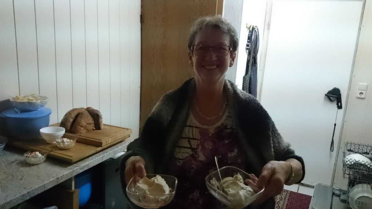 Salz macht Lust auf Süßes, also war es an der Zeit den Nachtisch zu richten. Leider war unsere langjährige Pâtissière Rosi erkrankt, dennoch mussten wir nicht auf unsere geliebte Maronencreme verzichten. Chefköchin Hannelore, ihr Oberkoch Robert und Küchenfee Traudel zauberten ebenfalls eine traumhafte Maronencreme mit Obststückchen – bei einer Whiskyprobe einfach unverzichtbar.