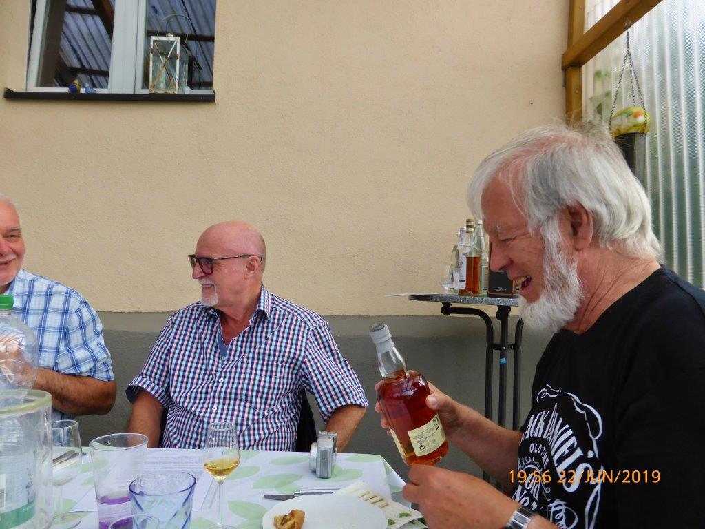 Zu erwähnen wäre noch: Henry stiftete den Whisky, Rainer den Spargel Hannelore und Harald das Essen und die übrigen Getränke. Der Rest warf einen Obolus in den