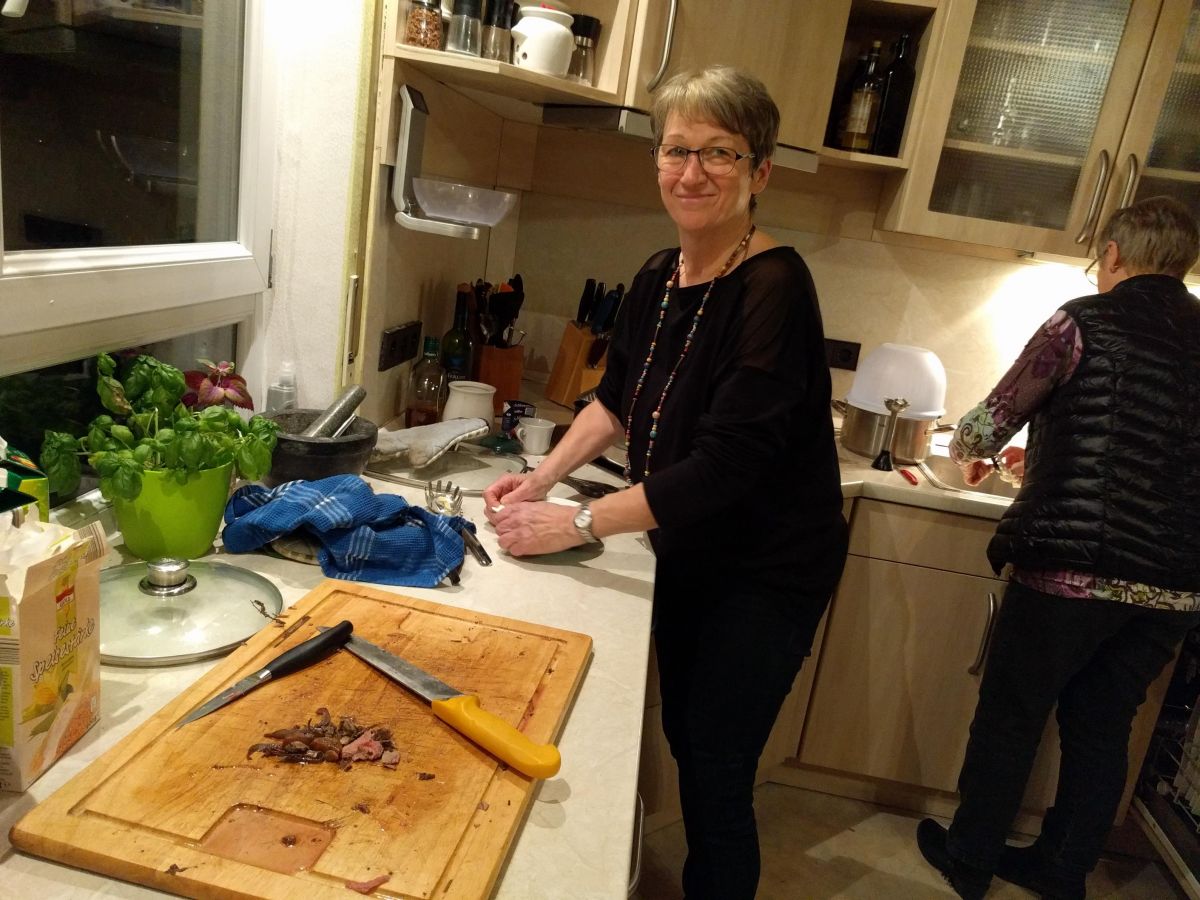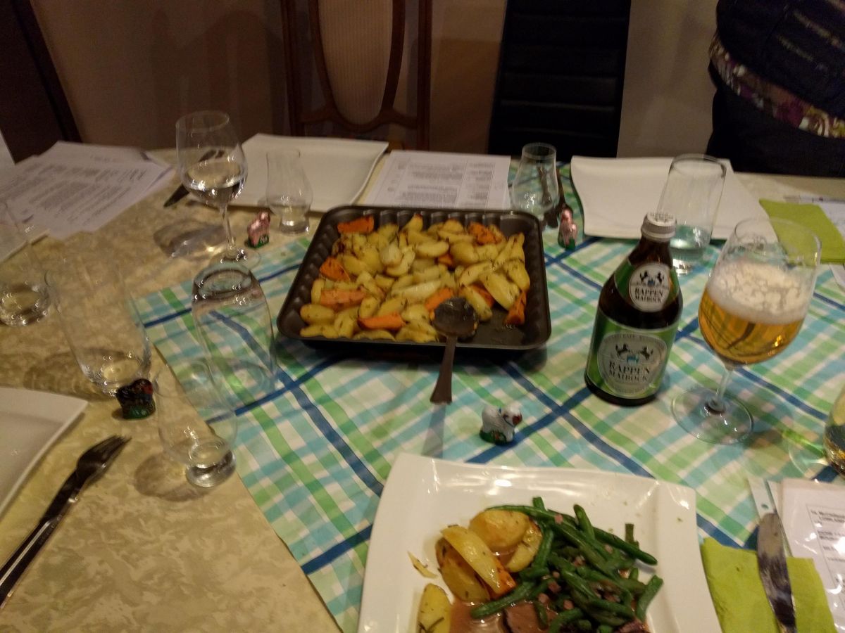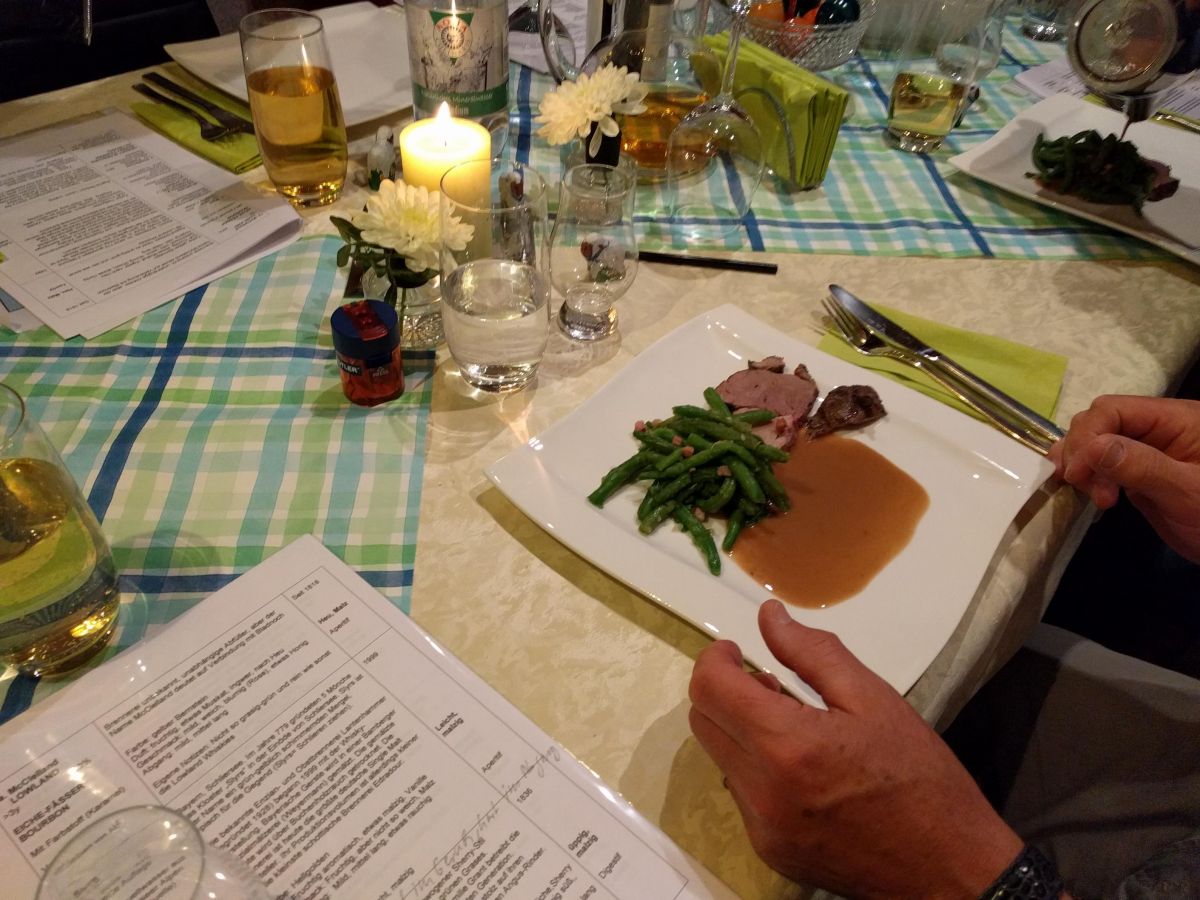 Apropos schmecken: Nun war es an der Zeit die Grundlage aufzufüllen. Hannelore hatte passend zu Schottland einen Lammbraten vorbereitet. Nach sechs Stunden in der Röhre zart wie Butter. Mit grünen Bohnen, selbst gemachten Nudeln und Rosmarinkartoffeln ein Hochgenuss, der dem Whisky in nichts nachstand.
