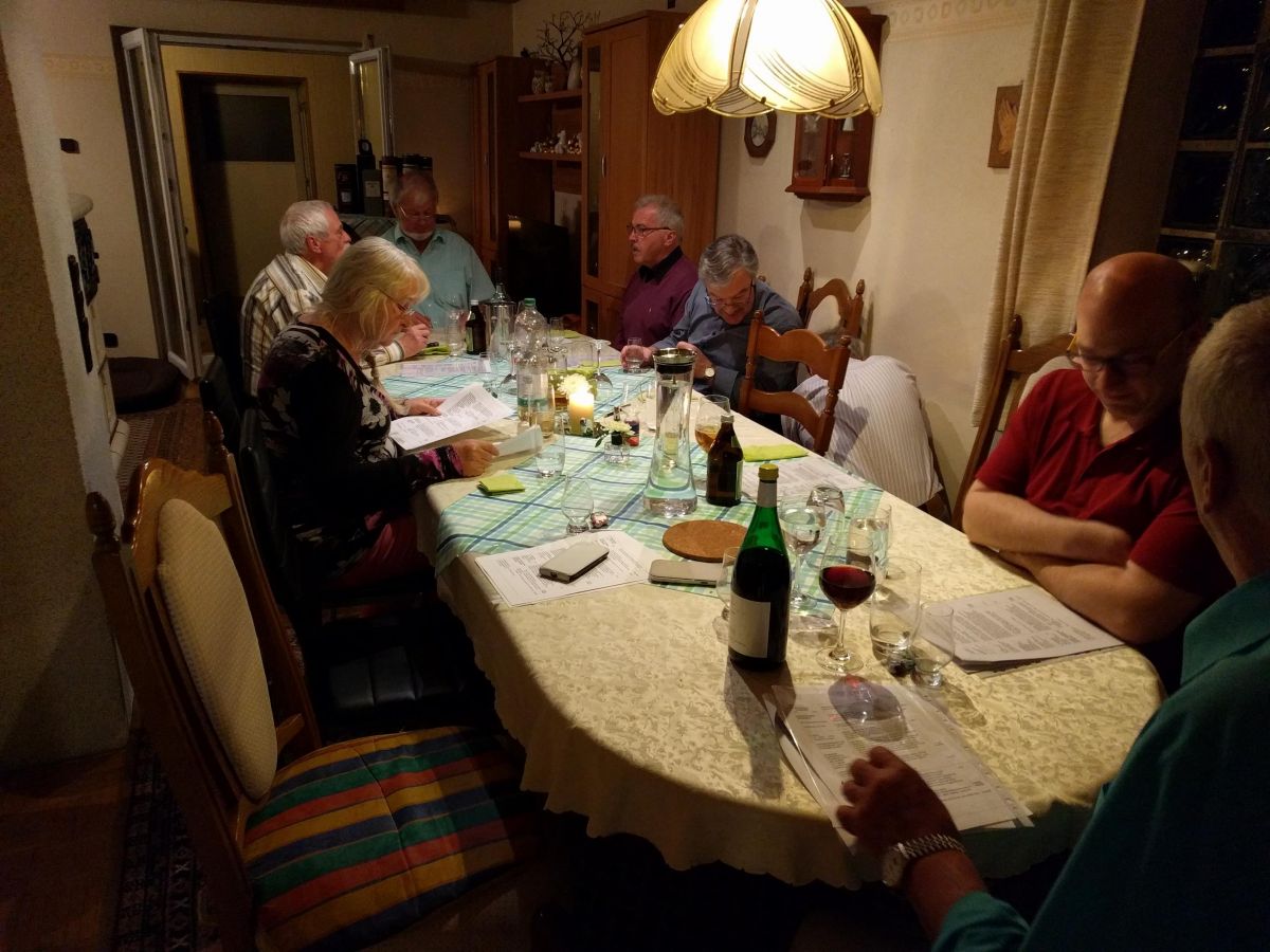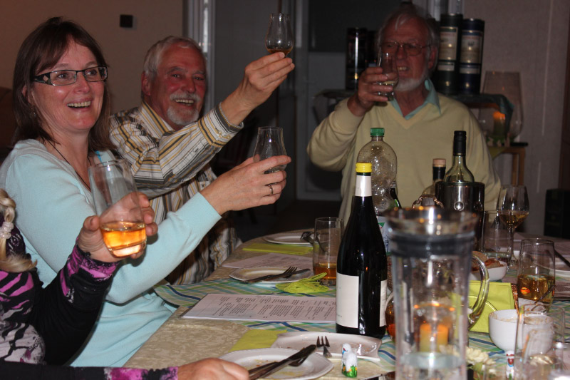 Die Probe war damit beendet, aber noch nicht der Abend. Zunächst galt es Dank zu sagen unserm „Whiskyprofessor“ und wandelnden Lexikon Henry für genussvolle und lehrreiche Stunden und ganz besonders für seine Schätze, die er wieder zur Verfügung stellte. Unseren Gastgebern Harald und Hannelore für die fabelhafte Bewirtung und auch den Küchenfeen Rosi (die mit dem Nachtisch), Traudl und Hildegard.
