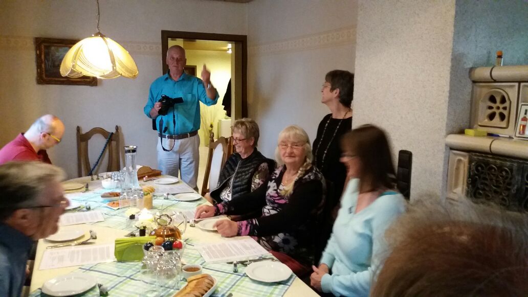 Genuss hat ja nichts mit Menge zu tun, aber Alkohol enthält Whisky natürlich auch und das nicht gerade wenig. Deshalb ist bei einer Probe eine gute Grundlage vonnöten. Unsere Gastgeberin Hannelore als exzellente Brotbäckerin in Sängerkreisen weithin bekannt, hatte verschiedene Brote gebacken und sie und ihre fleißigen Helferinnen Rosi, Traudl und Hildegard hatten diverse Aufstriche sog. Dips gerichtet. Ein hervorragendes Entrée.
