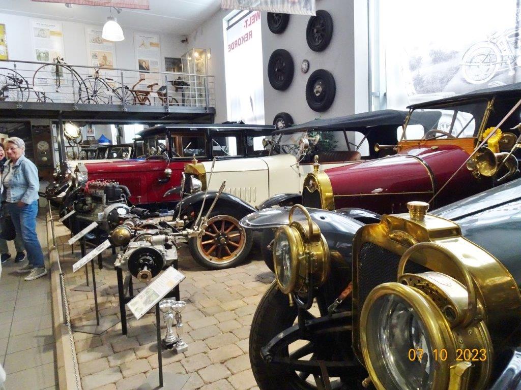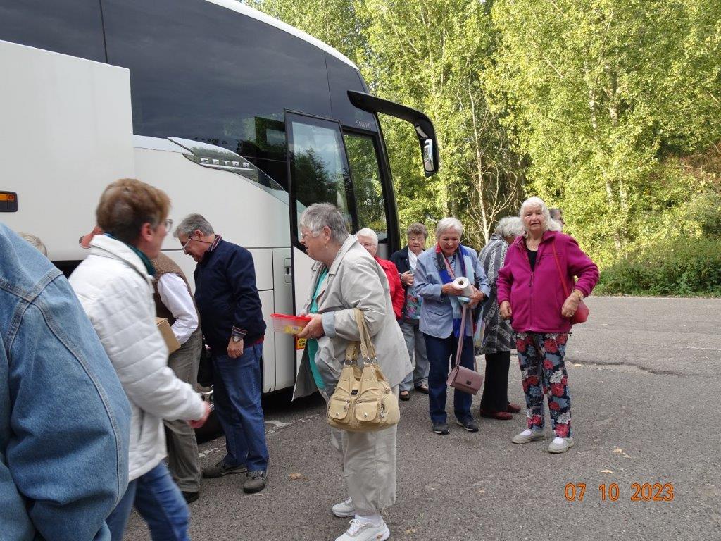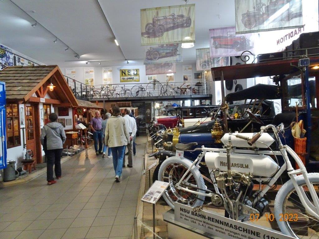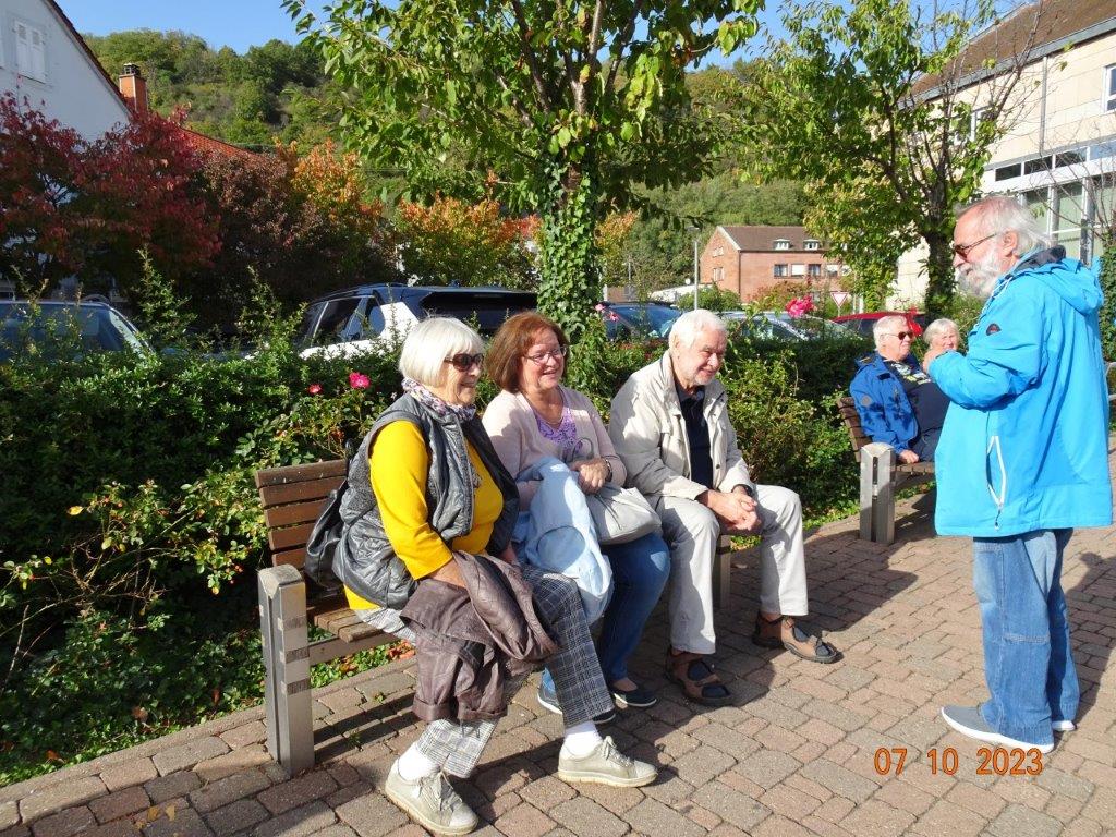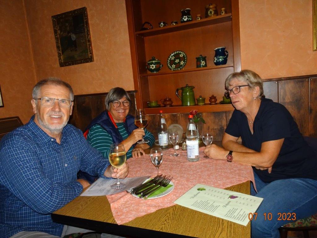 Am 7. Oktober ging´s um 8.30 Uhr los und unser Busfahrer Yilmaz fuhr pünktlich die ausgemachten Haltestellen an. Leider waren doch einige Plätze freigeblieben, aber das tat der Freude auf diesen Tag keinen Abbruch. Unser Vorstand Klaus Reinhardt begrüßte die Anwesenden und unser Busfahrer, der uns großartig chauffierte, stellte sich vor. Dann übernahm unser Commander Klaus Eichsteller die Leitung dieses Tages, mit seinen Astronessen Heidi und Doris zur Seite. Er hatte wieder akribisch diesen Ausflug vorbereitet und unsere erste Andockstelle war an der Fähre in Rheinhausen, wo wir bei „Heidi´s Rhoiheisel“ unsere Brezelpause machten. Ein Danke an Jola und Brigitte, die für leckere Butter-Brezel gesorgt hatten, die am Rhein besonders gut schmeckten. Die von unserem Commander spendierten Schaumküsse rundeten die Pause ab und es ging weiter zu unserem nächsten Ziel, dem Museum Autovision in Altlußheim. Bei einer Führung erfuhren wir viel Interessantes über die Gesamtheit der Entwicklung der Mobilität und die Individualität der Fortbewegungssysteme. Es fing an mit dem Laufrad des Freiherrn von Drais, Motorrädern ab 1885 und die Automobilgeschichte ab 1886, wobei NSU, Motorsport und Wankelmotoren eine große Rolle spielten. Ein Schmankerl fürs Auge waren die von Jean Bugatti designten Fahrzeuge und die Hintergrundgeschichten, die wir von Herrn Schultz erfuhren. Natürlich waren auch E-Mobile und die Zukunft mit der Wasserstoff-Technologie ein großes Thema in diesem sehenswerten Museum. Das gab einigen Gesprächsstoff auf unserer Weiterfahrt nach Annweiler.