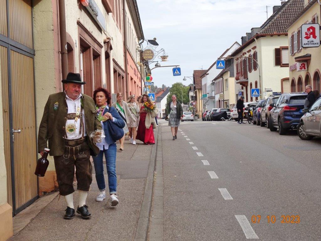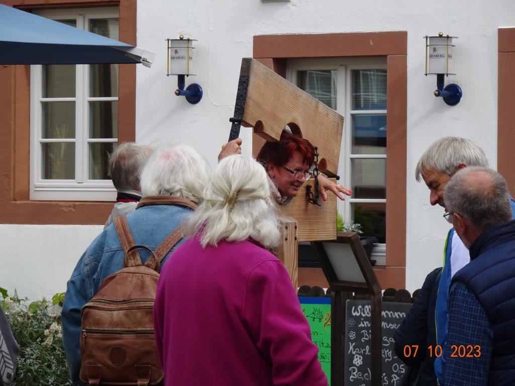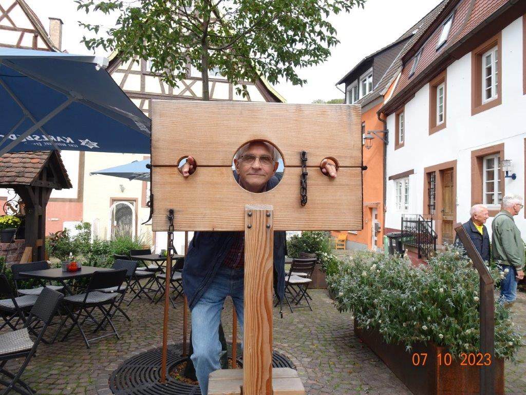 Da gab es viele Keschde-Spezialitäten und auch andere Dinge zu entdecken und es bot sich natürlich an, sich die kulinarischen Leckereien rund um die Keschde schmecken zu lassen. Sogar die frisch gekrönte Keschde-Königin lief uns für ein Foto über den Weg. Am Prangertshof findet sich tatsächlich noch ein Pranger, der aber heute als lustige Fotokulisse dient. Die Geißböcke am dortigen Brunnen weisen auf den Spitznamen der Annweiler hin. Ein feines Café war ein weiteres Ziel einiger Ausflügler und an der offen gelegten Queich konnte man vor der Weiterfahrt nochmal die Stadt am Trifels, wo man einst auf der Burg Richard Löwenherz gefangen hielt, auf sich einwirken lassen.