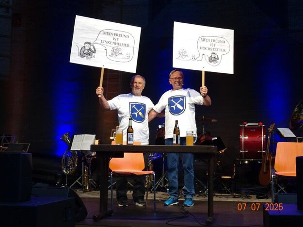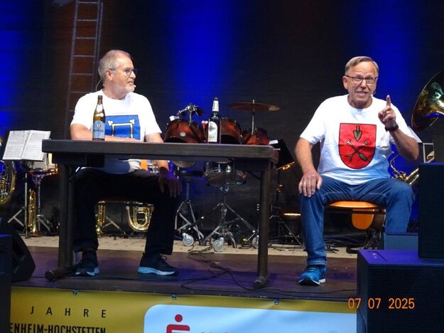 Am Festmontag waren etliche Helferinnen und Helfer gekommen, um schon morgens unsere Hütten zu räumen und alles wieder zurück zu bringen, denn wir hatten uns bereits montags vom Festbetrieb ausgeklinkt. Danke auch an dieses Team. Abends war unser Bunter Abend angesagt, wie er sonst im Festzelt im Erlich stattfindet. Man hatte sich für Open Air entschieden und das Wetter hielt glücklicherweise über die Veranstaltung. Klaus Reinhardt übernahm die Moderation und kündigte die einzelnen Gruppen an. Der Abend wurde natürlich, schon obligatorisch, vom Musikzug der FFW Li-Ho eröffnet, der die Stimmung ordentlich anheizte. Es folgte die Gemeinde-Verwaltung mit BGM Möslang, der lobende Worte zum Fusionsfest mit den ganzen Vorbereitungen fand und allen Beteiligten, die über den langen Zeitraum mitgemacht, durchgehalten und zum Gelingen beigetragen haben, herzlich dankte. Sein Verwaltungschor hatte wieder bekannte Lieder auf das Rathausgeschehen umgeschrieben, wobei auch die Gemeinde-Fusion Thema war. So auch nachfolgend bei einem Stammtischgespräch, das Klaus König als Hochstetter mit dem Linkenheimer Jürgen Müller führte. Köstlich, wie diese beiden die „Heirat“ der Schnecken und Affen vorbrachten. Vor allen Dingen auch die Sprachunterschiede in den zwei Ortsteilen, einer eher „o-lastig“, der andere mehr mit „a“. Als nächstes trug der Chor der Fußballer und der Gymnastikdamen bekannte Lieder vor und das „Alte Haus von Rocky Docky“ wurde passend für Li-Ho umgeschrieben. Dafür wurde jeder vom Chor von Hans Fürniß mit einem gekühlten Piccolo belohnt – Überraschung! Danach hielten die uns treuen Prismaten Einzug, die die Stimmung noch mehr anhoben und sich mit „Meiner kleinen Welt“ in Li-Ho geborgen fühlten. Der Musikzug der FFW zeigte seine stimmlichen Qualitäten unter anderem beim Erlich-Lied und Reiseplänen nach Marokko. Ein riesiges Dankeschön an alle Gruppen - Ihr ward Spitze! Zur anschließenden Siegerehrung rief Klaus Reinhardt von jeder Gruppe einen Vertreter auf die Bühne, um ihnen eine kleine Anerkennung zu überreichen. Natürlich waren alle Sieger, keine Frage.