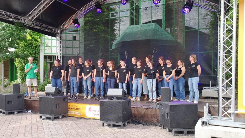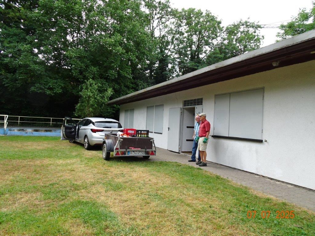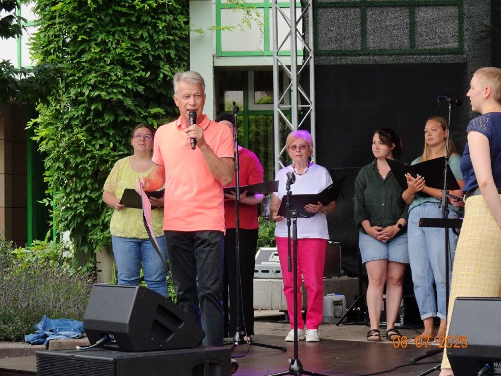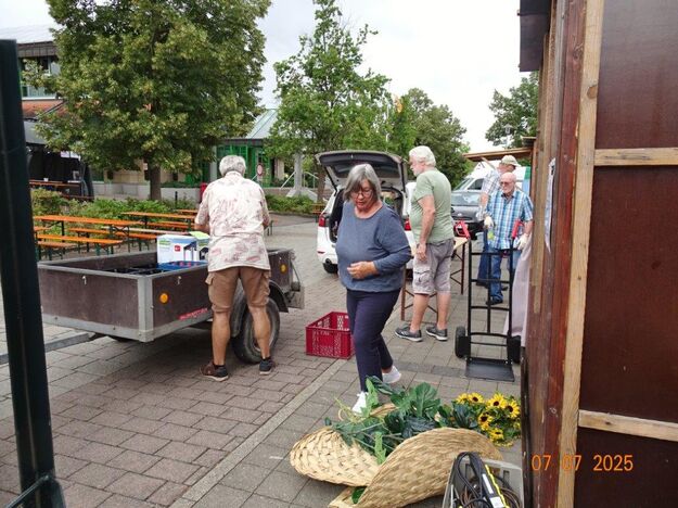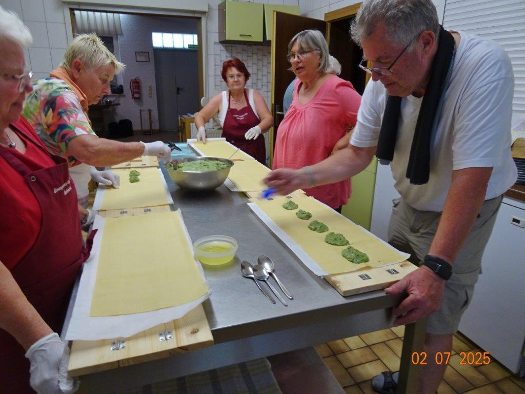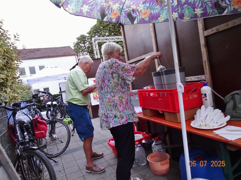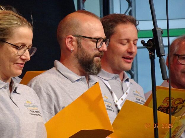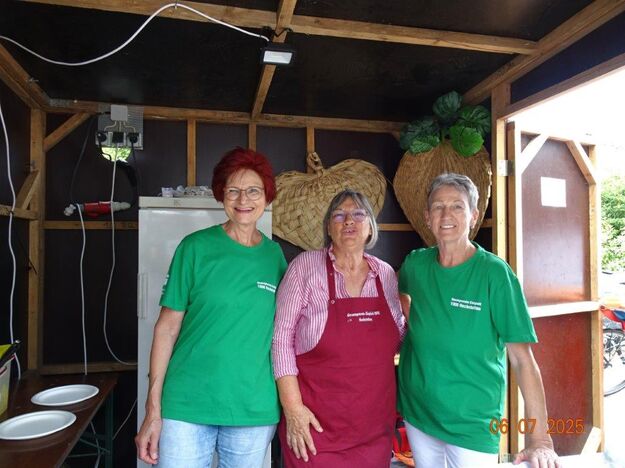 Unser Gemeindefusionsfest begann mit nahezu tropischen Temperaturen. Freitags, wenige Stunden vor Festbeginn, wurden noch fleißig unsere Hütten bestückt, nachdem Tage zuvor die Maultaschen-Produktion auf Hochtouren lief. Hier ein Danke an unsere Macher und Organisatoren Uschi und Rolf und ihre Mitstreiter. Gleichzeitig auch ein ganz herzliches Dankeschön an unseren Sponsor GLOBUS-Wiesental für die Spende. Natürlich auch danke an all unsere aktiven und passiven Mitglieder, die über die Festtage einen großartigen Dienst leisteten und unserem 1. Vorsitzenden Klaus Reinhardt, der immer rundum für Nachschub sorgte, mithilfe unseres 2. Vorsitzenden Markus Ksienzyk. Nur mit solcher Unterstützung kann das Ganze funktionieren! Um 18.00 Uhr erfolgte mit dem traditionellen Fassanstich durch unseren BGM Michael Möslang und der Begrüßung der Delegationen der Partnerschaftskommunen die feierliche Eröffnung des Festes. Und da war viel geboten, mit 3 Bühnen und vielen tollen Bands und anderen Unterhaltungsangeboten, von den Vereinen, Schulen und Ständen, die kulinarisch verwöhnten, Schaustellern und auch die Security und andere Dienste, die hier Bereitschaft hatten, nicht zu vergessen! Kurz, es war rundum für alles bestens gesorgt, um auf dem Festgelände schöne Stunden zu verbringen. Sonntags waren kühlere Temperaturen angesagt, eine richtige Wohltat nach den zwei ersten heißen Festtagen. Die von uns eingeladenen Chöre Da Capo aus Graben und der JCK vom KIT Karlsruhe waren pünktlich vor Ort, um bei unserem Bruderverein Sängerbund Linkenheim, der befreundete Chöre geladen hatte, aufzutreten. Beide Chöre sangen unter neuer Leitung und begeisterten mit modernem Liedgut das Publikum, wobei der JCK größenmäßig und stimmgewaltig beeindruckte und Lust auf sein Sommerkonzert machte. Die Stimmung vor Ort war gut und auch die Nachricht, dass gegen 18.00 Uhr unsere Maultaschen ausverkauft waren, ließ Freude aufkommen. Schade für die, die keine mehr bekamen, aber für uns das Zeichen, dass sie geschmeckt haben, wie wir auch immer wieder bestätigt bekamen. Fazit: Die Maultaschen könnten in unser Festprogramm aufgenommen werden – schaun wir mal. Der Sängermax und unsere Weinschorle waren auch der Renner, so hat sich die ganze Arbeit und Mühe gelohnt und den Verein zusammen geschweißt.