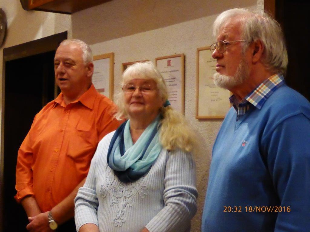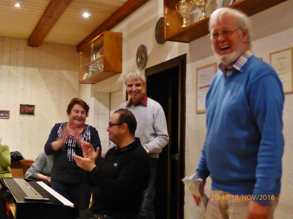Am Freitag, 18.11. hatten wir drei Jubilare, für die wir gerne ein Ständchen sangen. Ehrenvorstand Harald Dürr bekam das „Trommellied“ und Rosi und Henry „Ihr von Morgen“ von uns dargebracht.