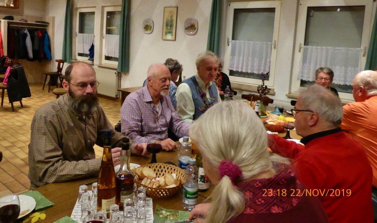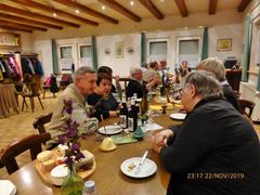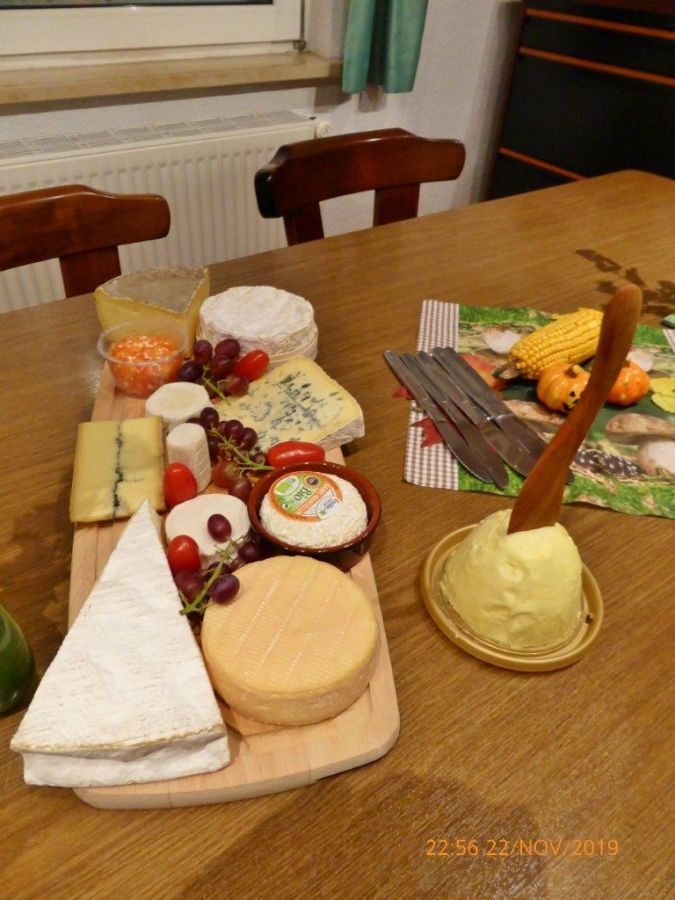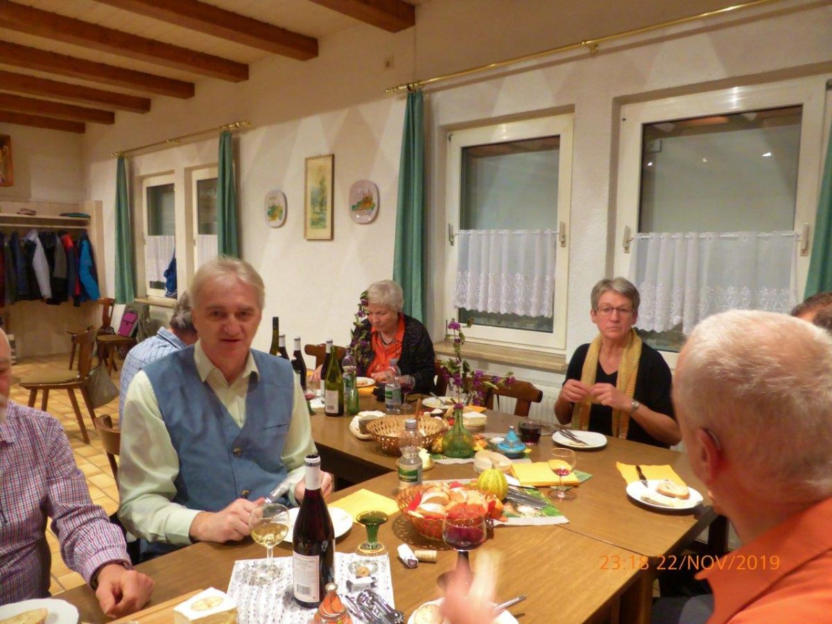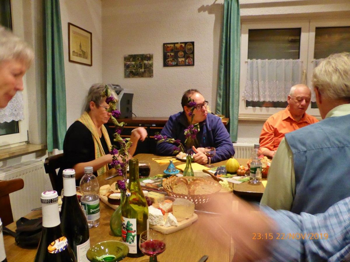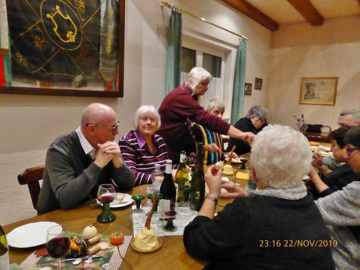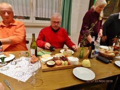 Am Freitag 22.11. brachten wir unseren Geburtstagskindern Rosi und Harald mit „Solang man Träume noch leben kann“ ein Ständchen dar. Für unsere Mühe während der Chorprobe wurden wir nach der Singstunde mehr als entlohnt. Rosi und Henry, der schon einige Tage vorher Geburtstag feierte, hatten es sich nicht nehmen lassen, uns anlässlich ihres 156. Geburtstages wieder das „savoir vivre“ mit einer köstlichen Käsevielfalt, Beaujolais primeur, Gewürztraminer und französischem Baguette kosten zu lassen – ganz herzlichen Dank euch Beiden!!