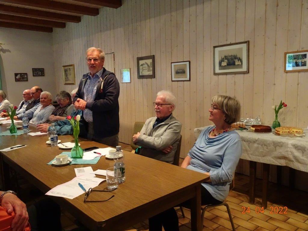 Leider waren einige Gäste verhindert, so dass er 32 anwesende Personen begrüßen konnte. Unsere sonst üblichen Liedvorträge fielen Corona bedingt aus und wir erhoben uns zur Totenehrung von den Plätzen. Aktuell haben wir 153 Mitglieder, davon 36 Ehrenmitglieder und 35 Aktive, davon 22 Frauen und 13 Männer. Wer unseren Chor verstärken möchte, darf gerne mal freitags zum Schnuppern kommen!