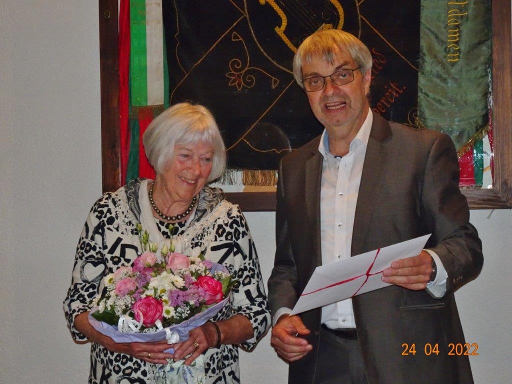 Unser 1. Vorsitzender Klaus Reinhardt bedankte sich herzlich bei unserer langjährigen Hauptkassiererin Reinhilde Fürniß für ihre vorbildliche Arbeit über viele Jahre mit einem Blumenstrauß. Eine fähige Nachfolgerin hatte sie bereits in Bernarda Strzlecka gefunden, die schon länger als ihre Vertreterin fungierte.