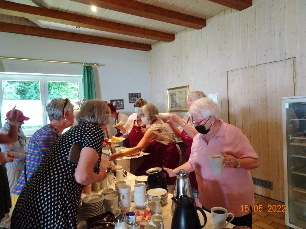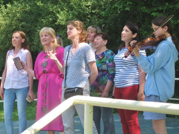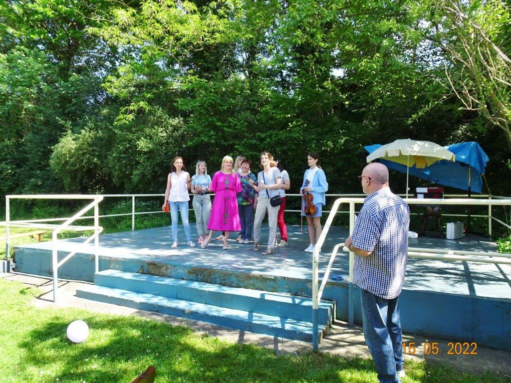 Auch sonntags herrschte schon früh rege Geschäftigkeit, Pavillons, Sonnenschirme, Tische und Bänke wurden aufgestellt und zahlreiche Kuchenspenden gingen ein – vielen Dank an die fleißigen Bäckerinnen und Sponsoren. Im Innenraum wurde auch alles schön dekoriert und die Kuchentheke vorbereitet und bestückt. Wir waren schon etwas aufgeregt, wie wird das Fest angenommen und wie klappt die Verständigung mit den eingeladenen Ukrainern. Christa Jung-Wittiger hatte ein Treffen mit Ukrainerinnen und ihren Kindern organisiert, um ihnen einen schönen Nachmittag zu bieten. Neuland für uns, aber es war ein absolut positives Erlebnis und die ukrainischen Frauen bedankten sich bei uns auf der Bühne und sangen einige Lieder für uns. Viel Seele war da zu hören und zu spüren und auch ergreifend das großartige Geigenspiel der jungen Marie. Ein Talent, das unbedingt gefördert werden muss! Hatte sie just an diesem Tag Geburtstag und bekam von unserer Jola ein Geburtstagspräsent überreicht, danke, Jola und danke Christa für das Sponsoring für die Kinder. Den Ukrainerinnen ganz herzlichen Dank unsererseits für diese wunderbare Einlage, wir würden uns über weitere Begegnungen freuen.
