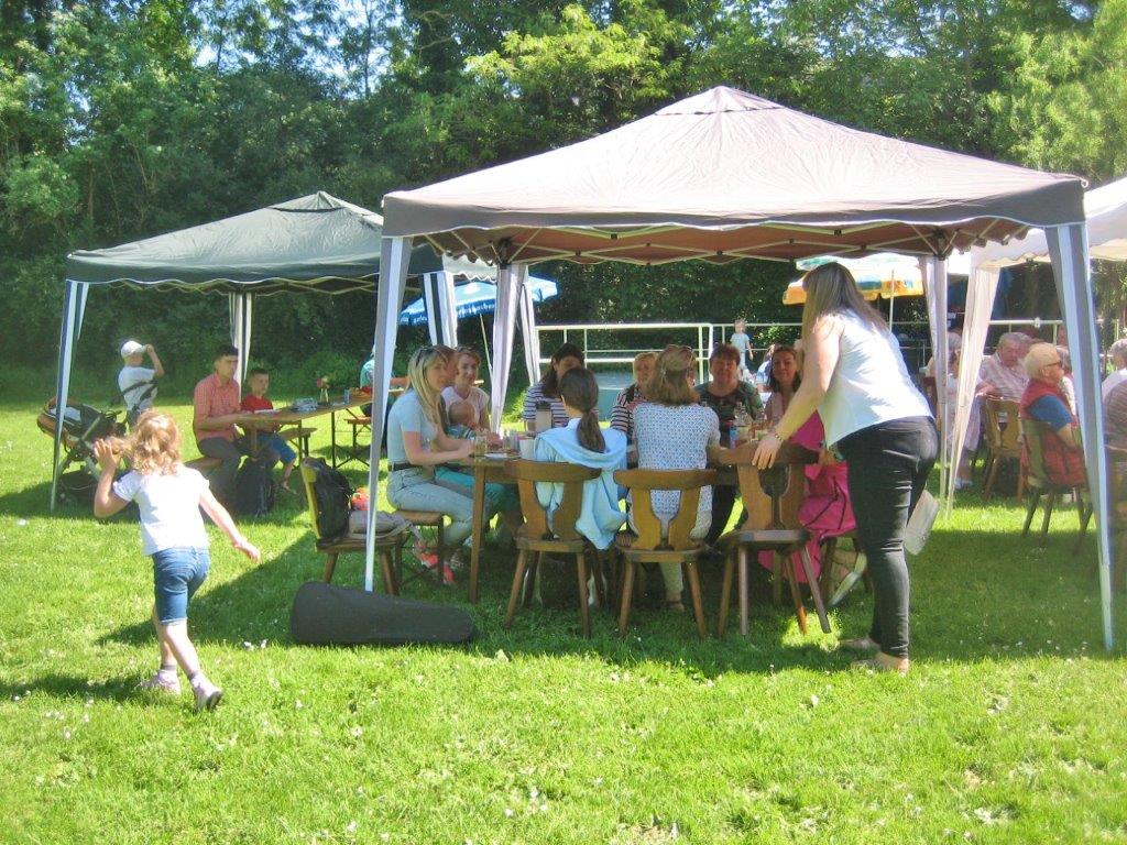 Dann gehörte die Bühne wieder unserem unermüdlich auf dem Keyboard spielenden Klaus Eichsteller, der dezente Hintergrundmusik bot, aber auch die Möglichkeit, auf der Bühne mal richtig abzutanzen, super Klaus! Der Wettergott meinte es gut, man war froh über Schattenplätze und es war ein fröhliches Völkchen, das es sich im Erlich gut gehn ließ. Ein ganz großes Dankeschön an alle Helferinnen und Helfer, die hier unermüdlich im Einsatz waren und dieses Fest gelingen ließen und natürlich an unsere treuen Besucher und Unterstützer unseres Vereins. Wir haben auch Erfahrungswerte für künftige Feste aus dieser Veranstaltung ziehen können.