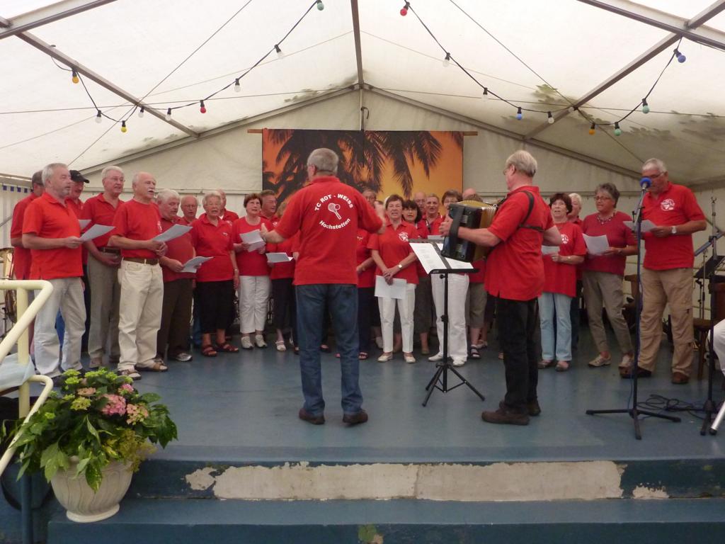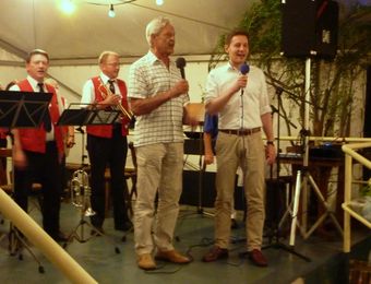Unser junger Bürgermeister Michael Möslang, der von Rainer Ritz auf die Bühne gebeten wurde, holte sich mit Altbürgermeister Waldemar Schütz Unterstützung. Herr Möslang "musste" den ersten Vers des Badnerliedes ansingen und bestand hierbei die Feuertaufe. Bei diesem Lied hielt es niemand mehr auf den Sitzen und inbrünstig wurde mitgesungen. So klang ein unterhaltsamer und lustiger Abend langsam aus und die Einsatzteams konnten entspannt dazu sitzen. Nochmals herzlichen Dank allen, den aktiven wie auch den vielen passiven Mitgliedern, die alles super gemeistert haben - ohne euch wäre so ein tolles Fest gar nicht möglich!