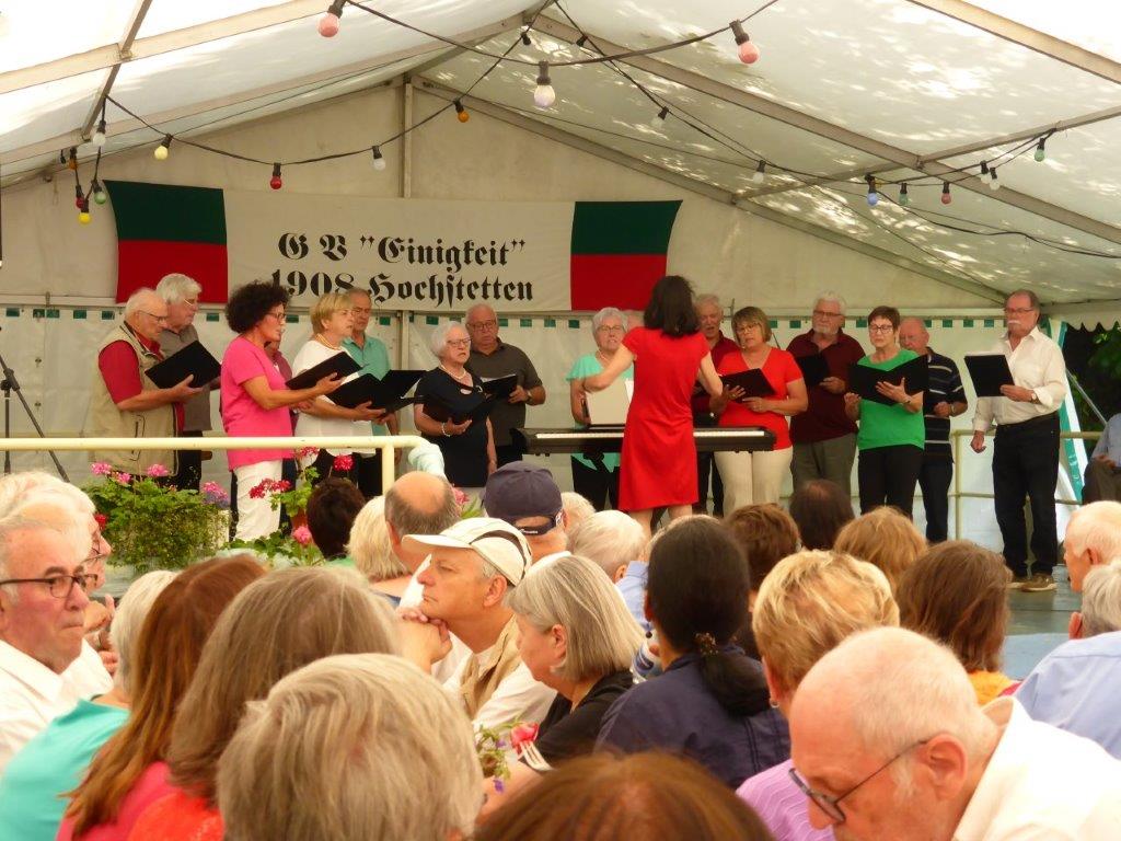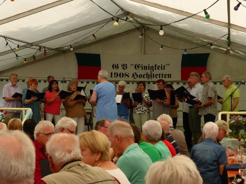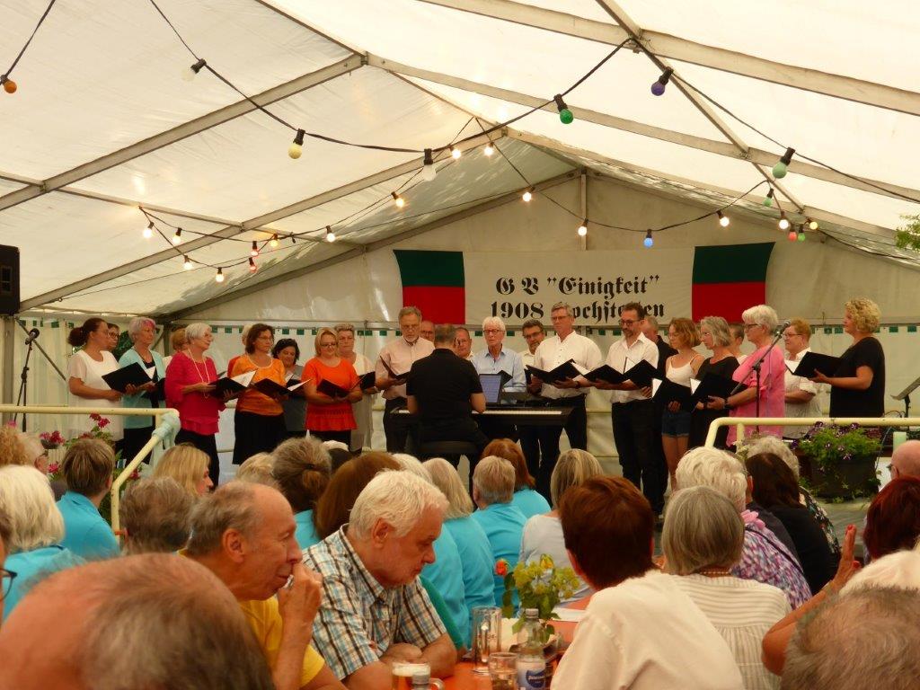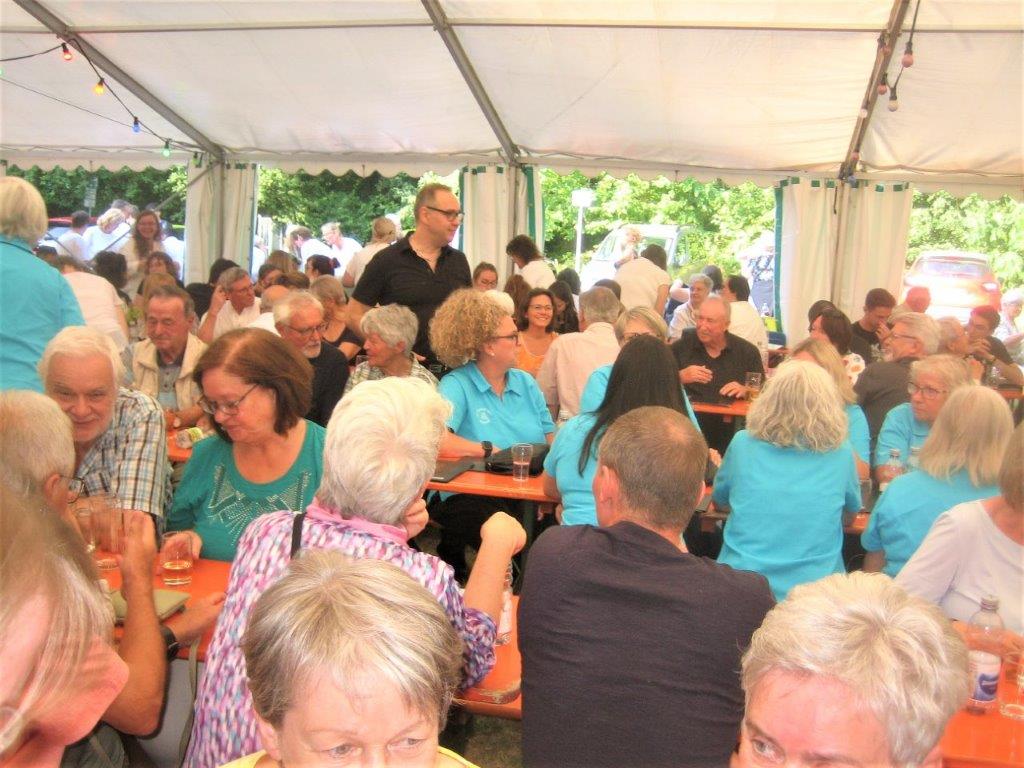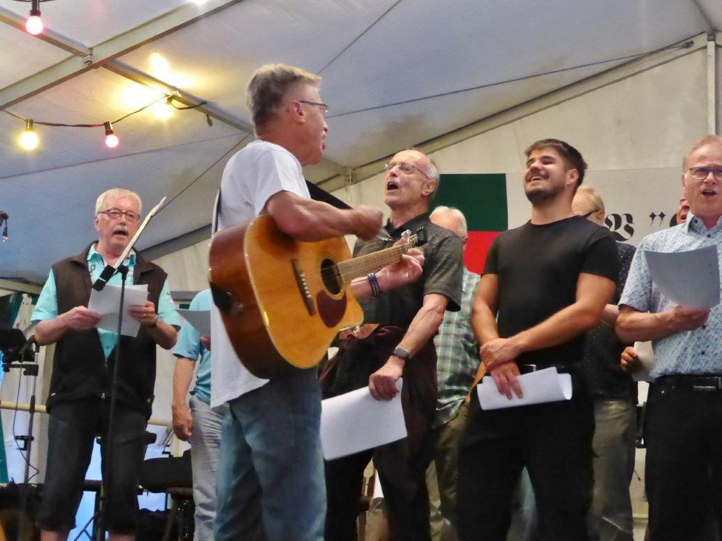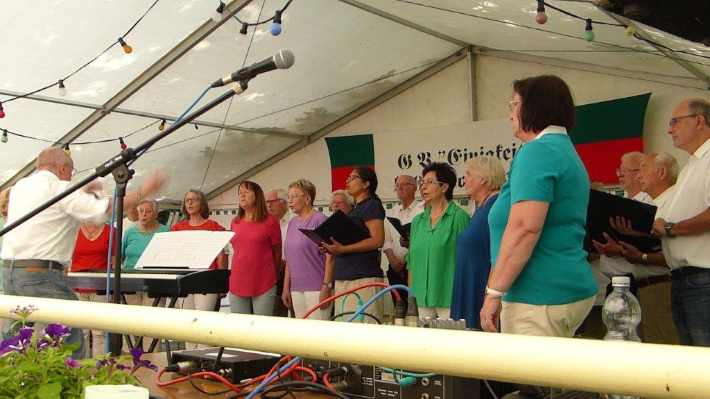 Wow, es hat am Sonntag im Erlich geboomt und hat all unsere Erwartungen übertroffen. Die ganze Mühe im Vorfeld hat sich gelohnt! Wir danken allen Helferinnen und Helfern, die sich bei uns engagiert haben, vor und während des Festes – ihr wart Spitze!! Unsere geänderten Festbeginnzeiten waren teilweise auch Coronafolgen geschuldet, aber der Freude unserer Besucher tat dies keinen Abbruch – danke auch euch allen fürs Kommen. Um 14.00 Uhr begann das Freundschaftssingen, das unser Chor mit vier Liedern eröffnete . Die gemischten Chöre: Liederkranz Spöck, Sängerbund Friedrichstal, GV 1873 Rußheim und der Liederkranz Graben haben unter der Leitung ihrer Dirigent(inn)en fabelhaft zum Programm beigetragen.