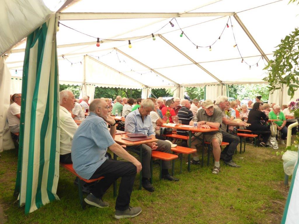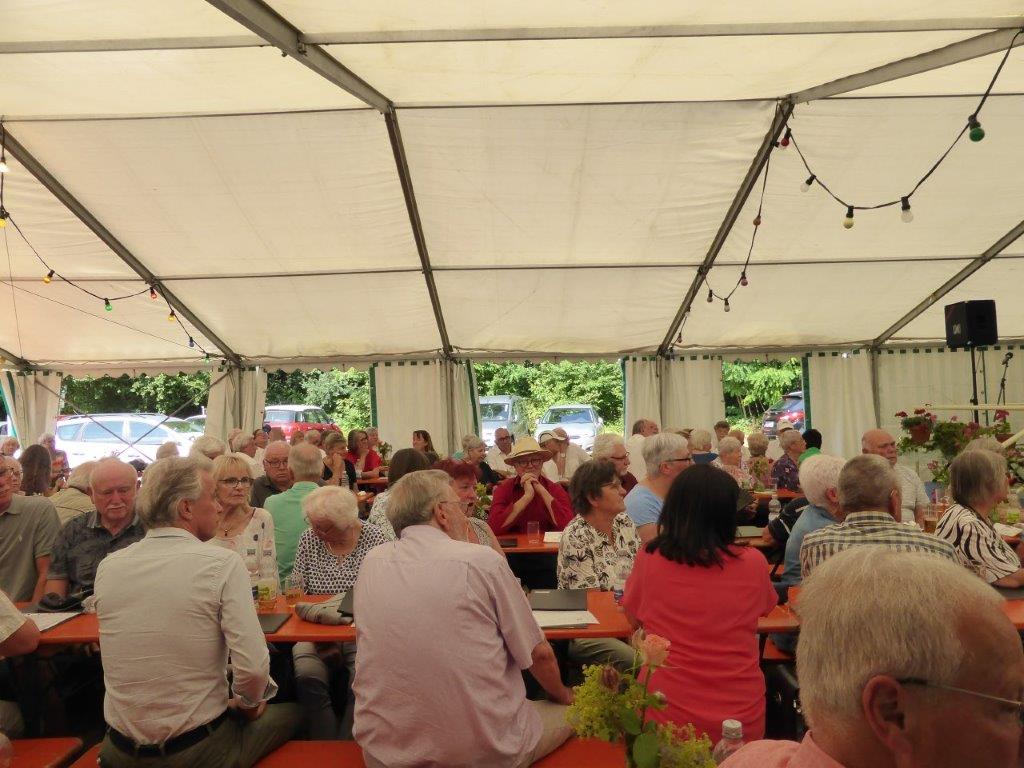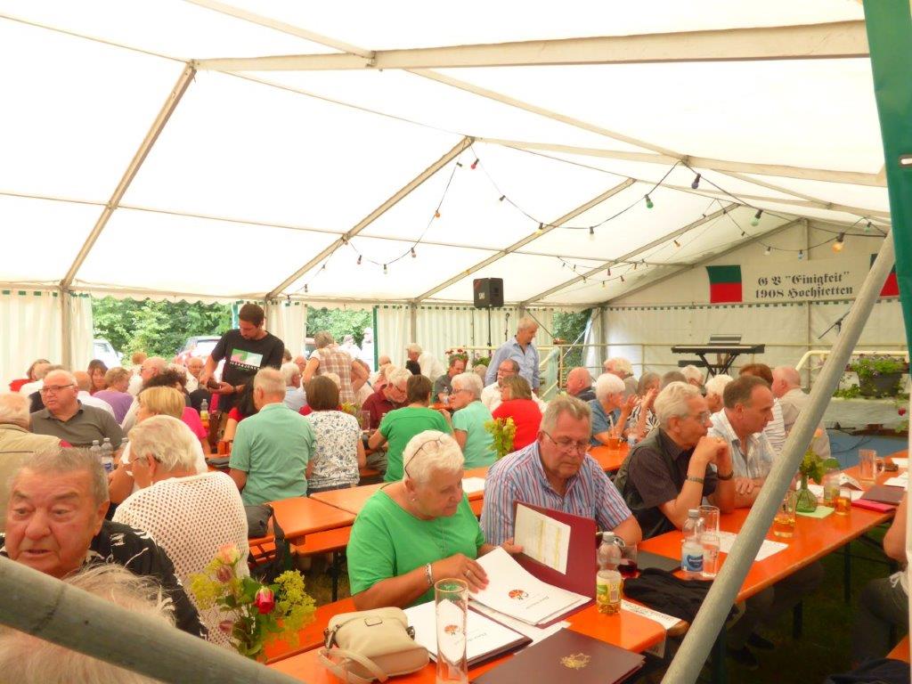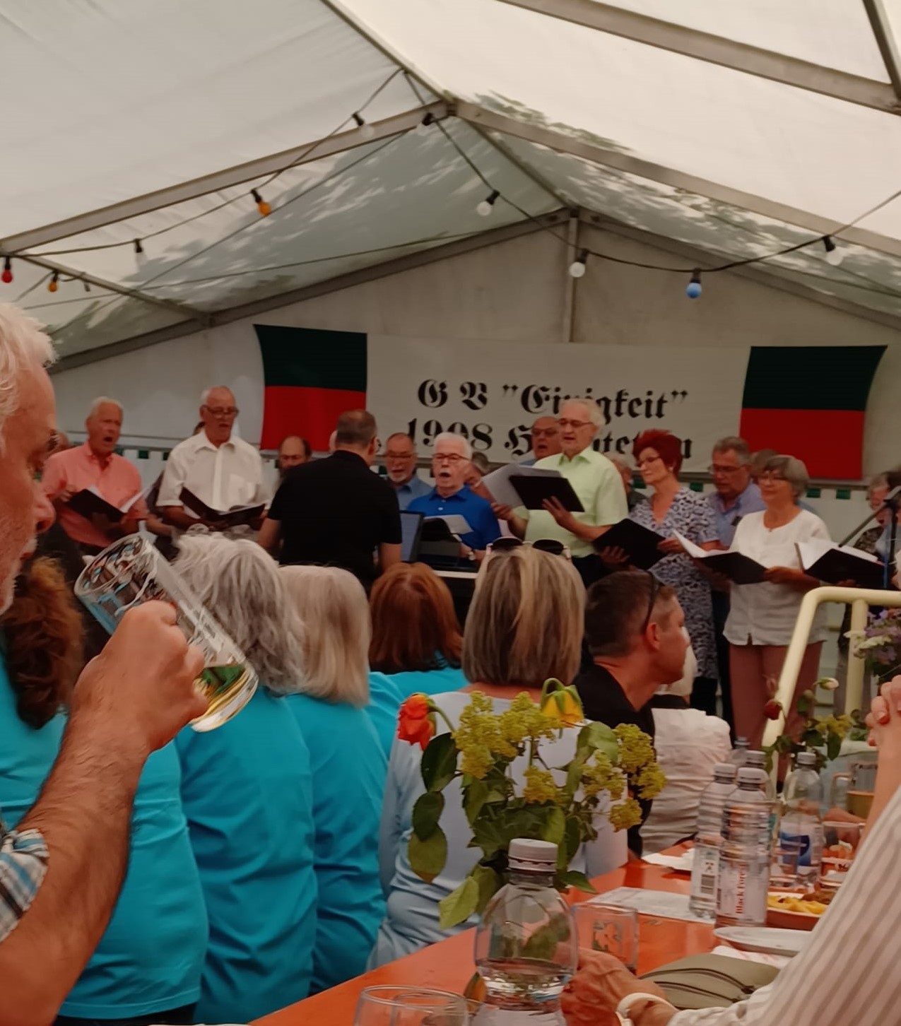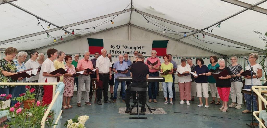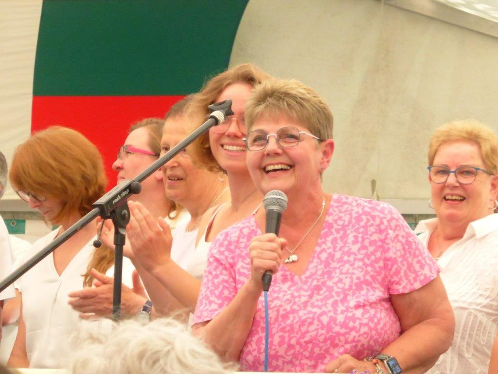 Wow, es hat am Sonntag im Erlich geboomt und hat all unsere Erwartungen übertroffen. Die ganze Mühe im Vorfeld hat sich gelohnt! Wir danken allen Helferinnen und Helfern, die sich bei uns engagiert haben, vor und während des Festes – ihr wart Spitze!! Unsere geänderten Festbeginnzeiten waren teilweise auch Coronafolgen geschuldet, aber der Freude unserer Besucher tat dies keinen Abbruch – danke auch euch allen fürs Kommen. Um 14.00 Uhr begann das Freundschaftssingen, das unser Chor mit vier Liedern eröffnete . Die gemischten Chöre: Liederkranz Spöck, Sängerbund Friedrichstal, GV 1873 Rußheim und der Liederkranz Graben haben unter der Leitung ihrer Dirigent(inn)en fabelhaft zum Programm beigetragen.