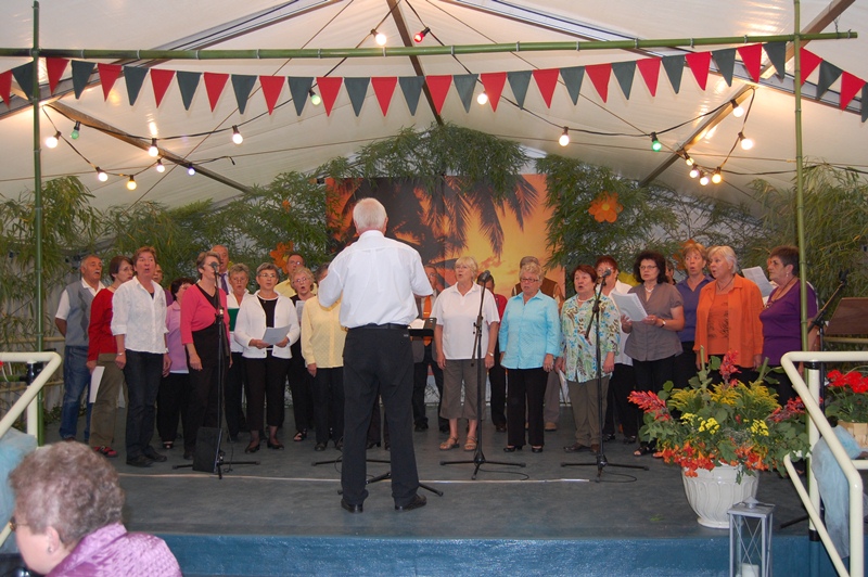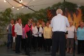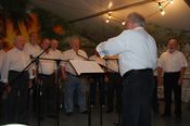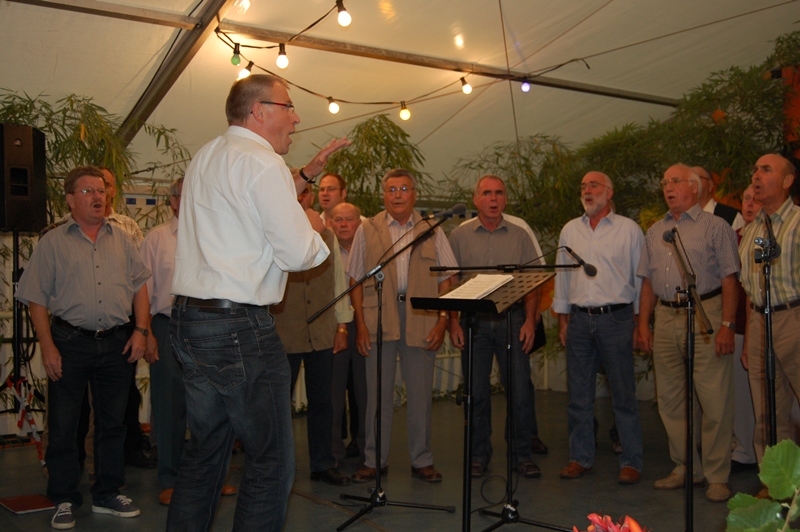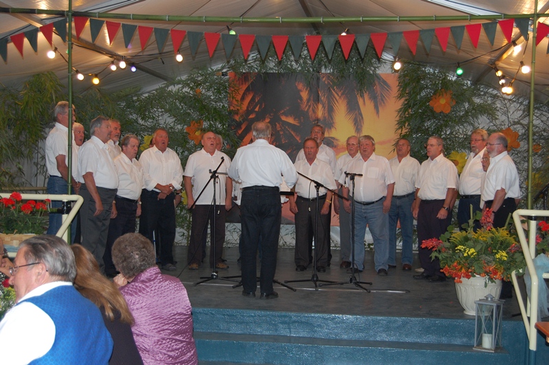Rainer Ritz verabschiedete jeden Chor nach dessen gekonnt gesungenen Vorträgen mit einem Witz oder einer Anekdote von der Bühne. Wie in früheren Jahren sangen danach die Männer am Tisch sitzend noch viele Lieder.