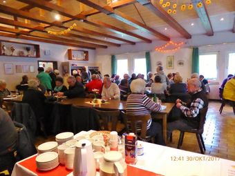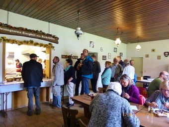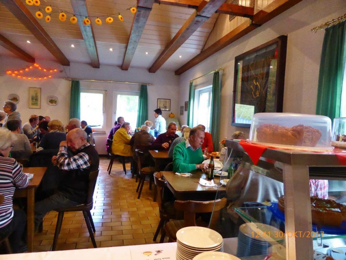 Unser Schlachtfest fand am Wochenende der Zeitumstellung (29. und 30. Oktober) statt. Es war eine lange, aber auch stürmische Nacht und der Sonntagmorgen trüb und regnerisch und einige waren skeptisch, ob sich bei diesem Wetter jemand auf den Weg in den Erlich macht. Aber siehe da, viele treue und auch neue Gäste erschienen pünktlich zur Mittagszeit. Das war eine echte Freude, stand unser Küchen- und Getränketeam doch schon frühzeitig zum Einsatz bereit. Nun gings rund und unser schön herbstlich dekoriertes Vereinsheim platzte fast aus allen Nähten. Den Gästen mundete es vorzüglich und auch das Kuchen- und Kaffeeangebot wurde gerne angenommen. Am Montag folgte der nächste Besucherstrom zur Mittagszeit und es schmeckte offensichtlich, auch unserem Bürgermeister, der kurz vor Ort war. Leider war die Kuchentheke frühzeitig geplündert, nächstes Jahr sieht das wieder anders aus.